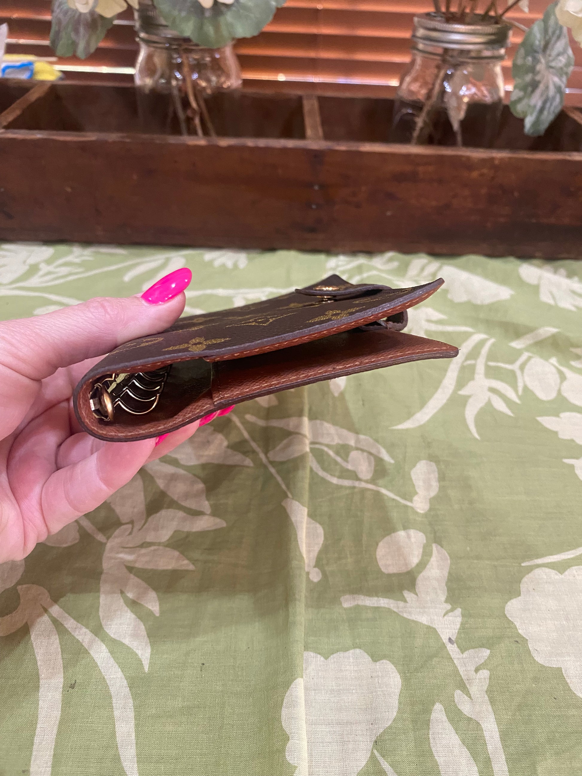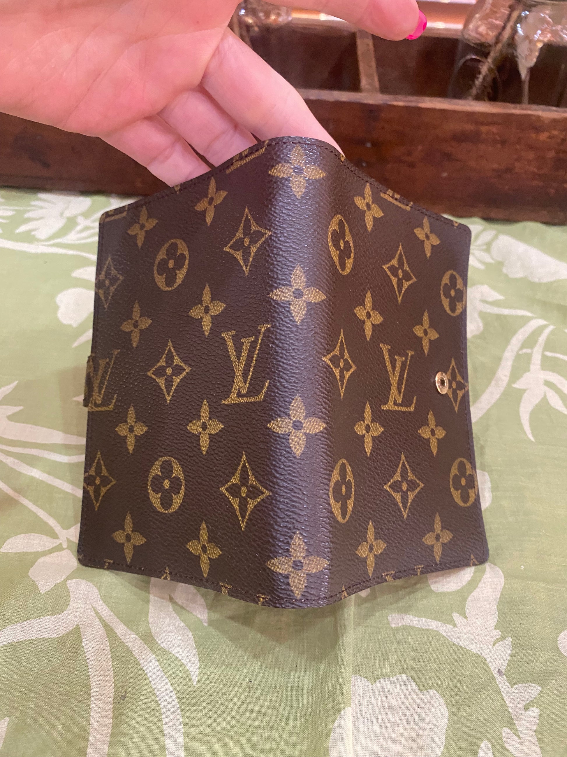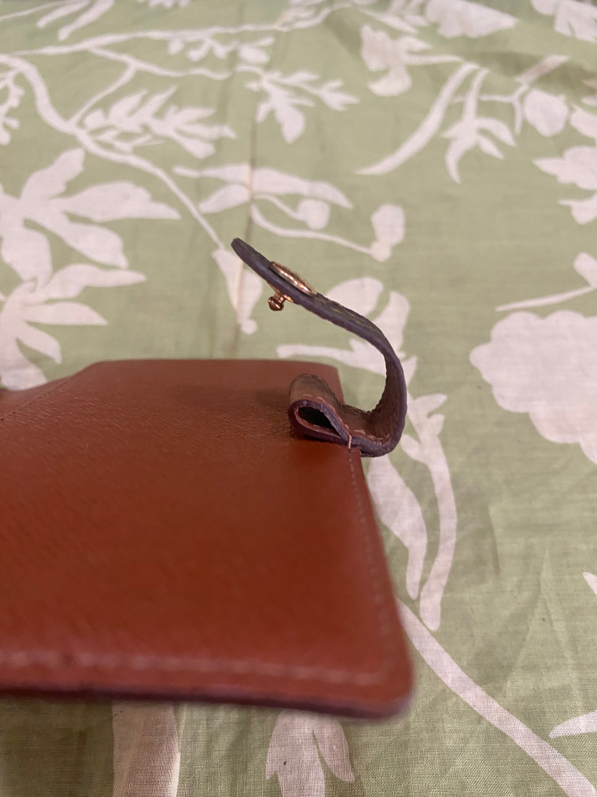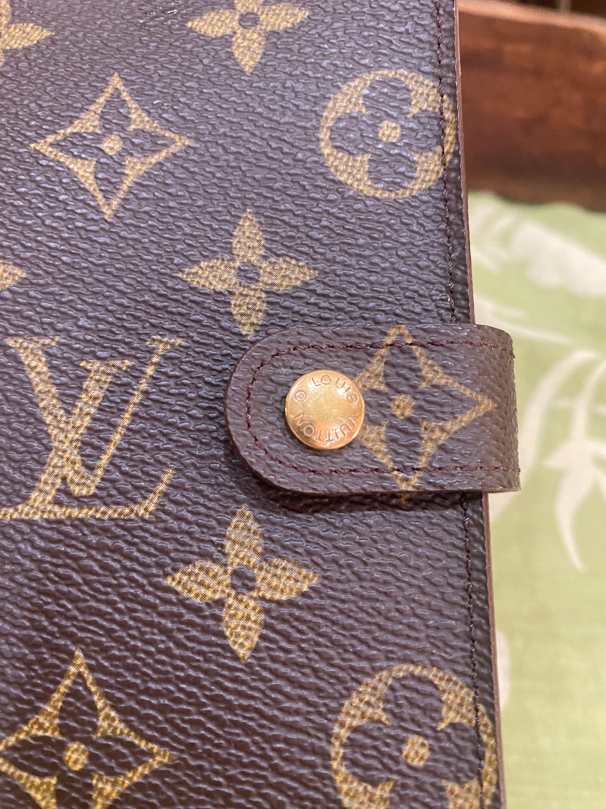 Canvas is free of cracking or tears, print is vibrant, snap is shiny and secure, glazing is intact, metal rings are tight, no stretching of credo card slots, left pocket only has some light peeling-no stickiness, right pocket is good, no foul smells. Comes with stickers and box.