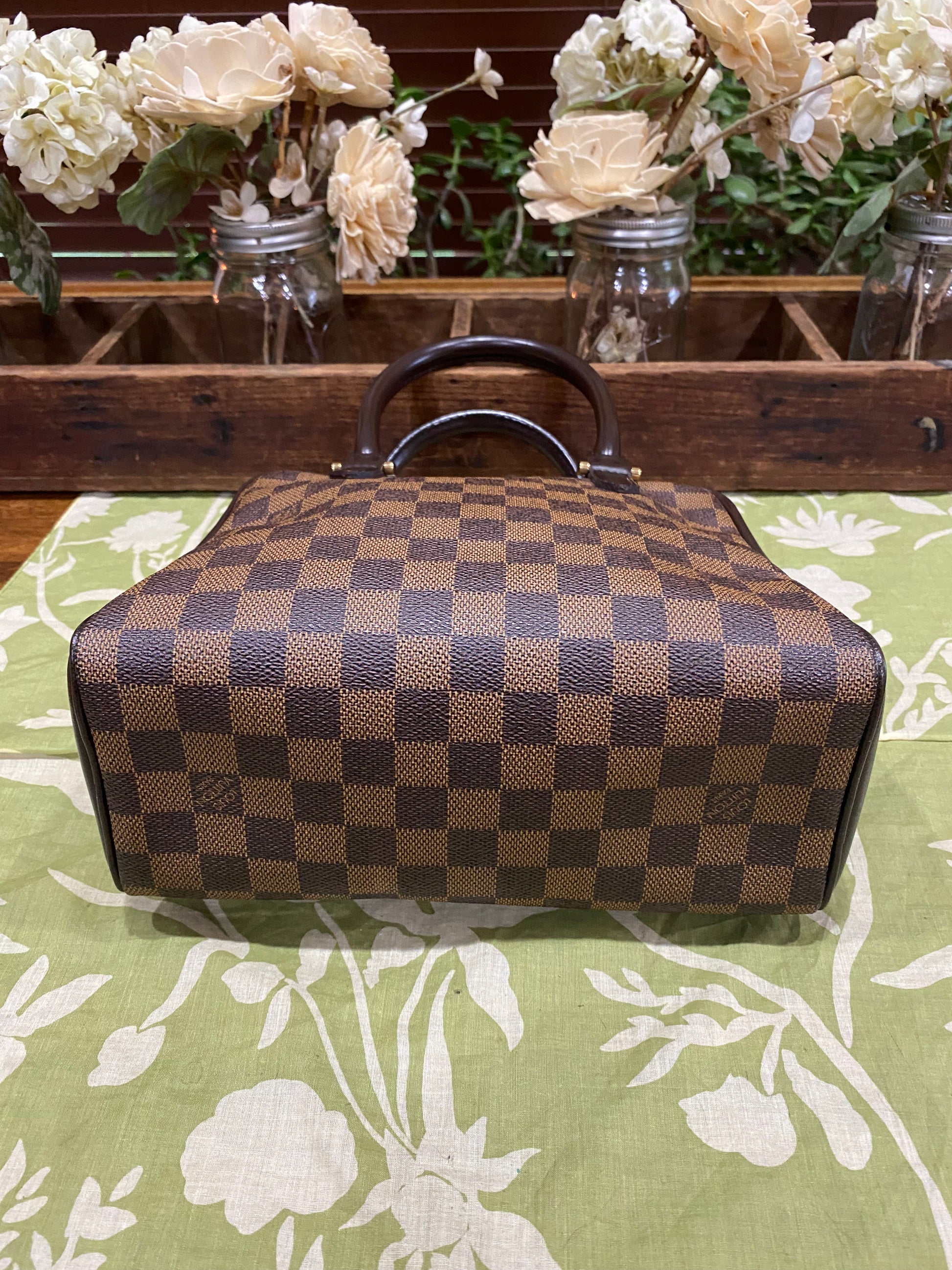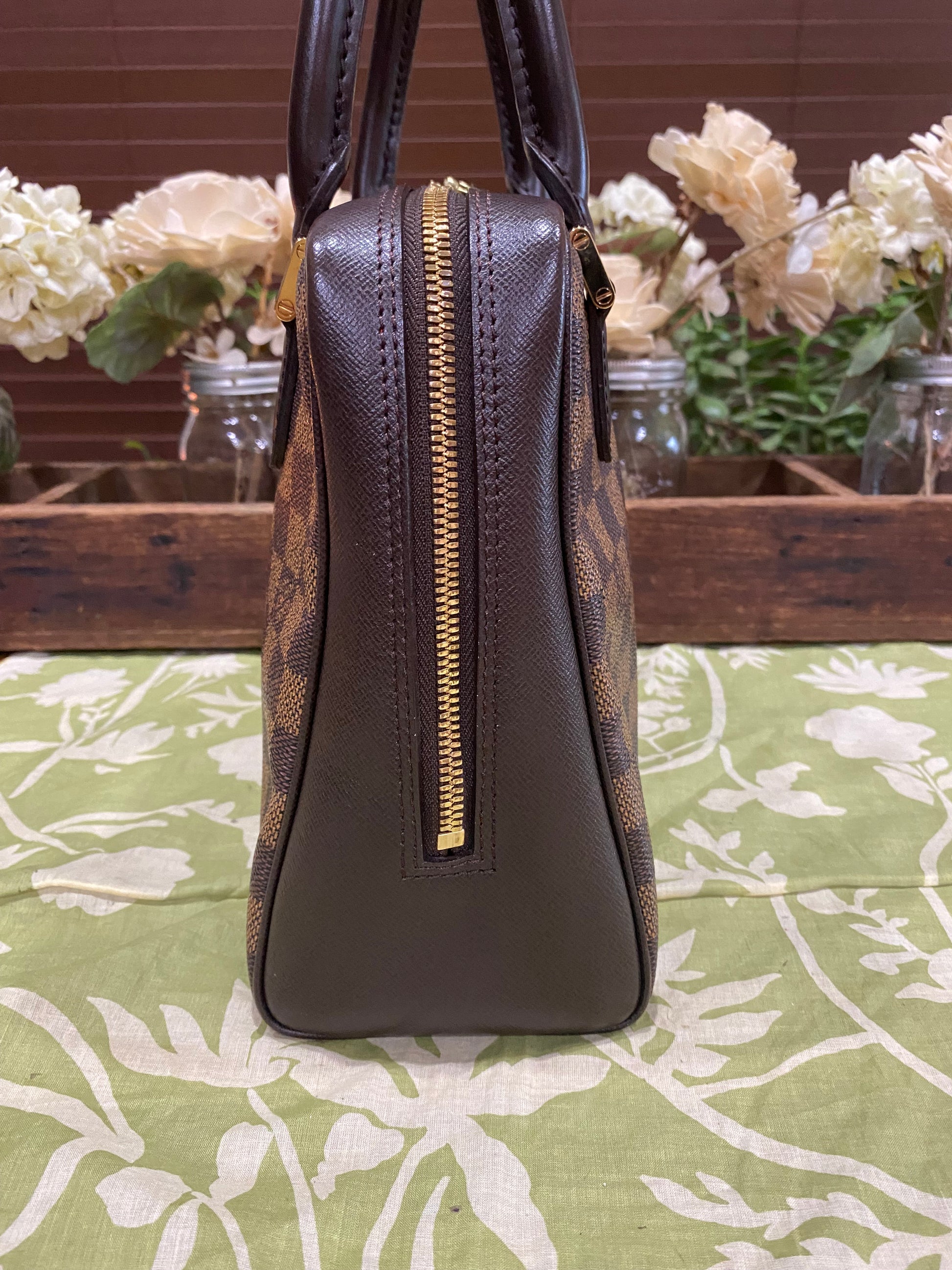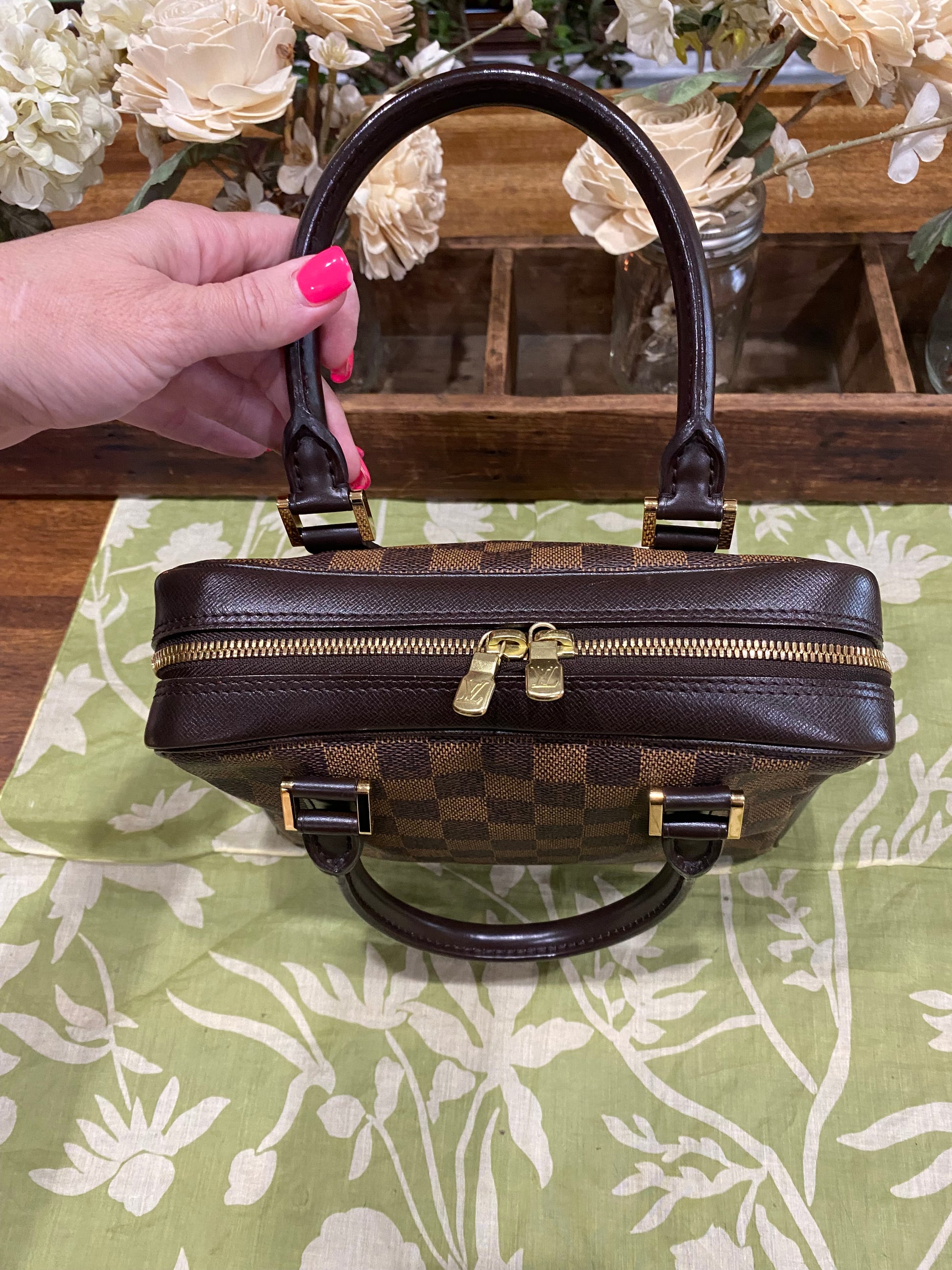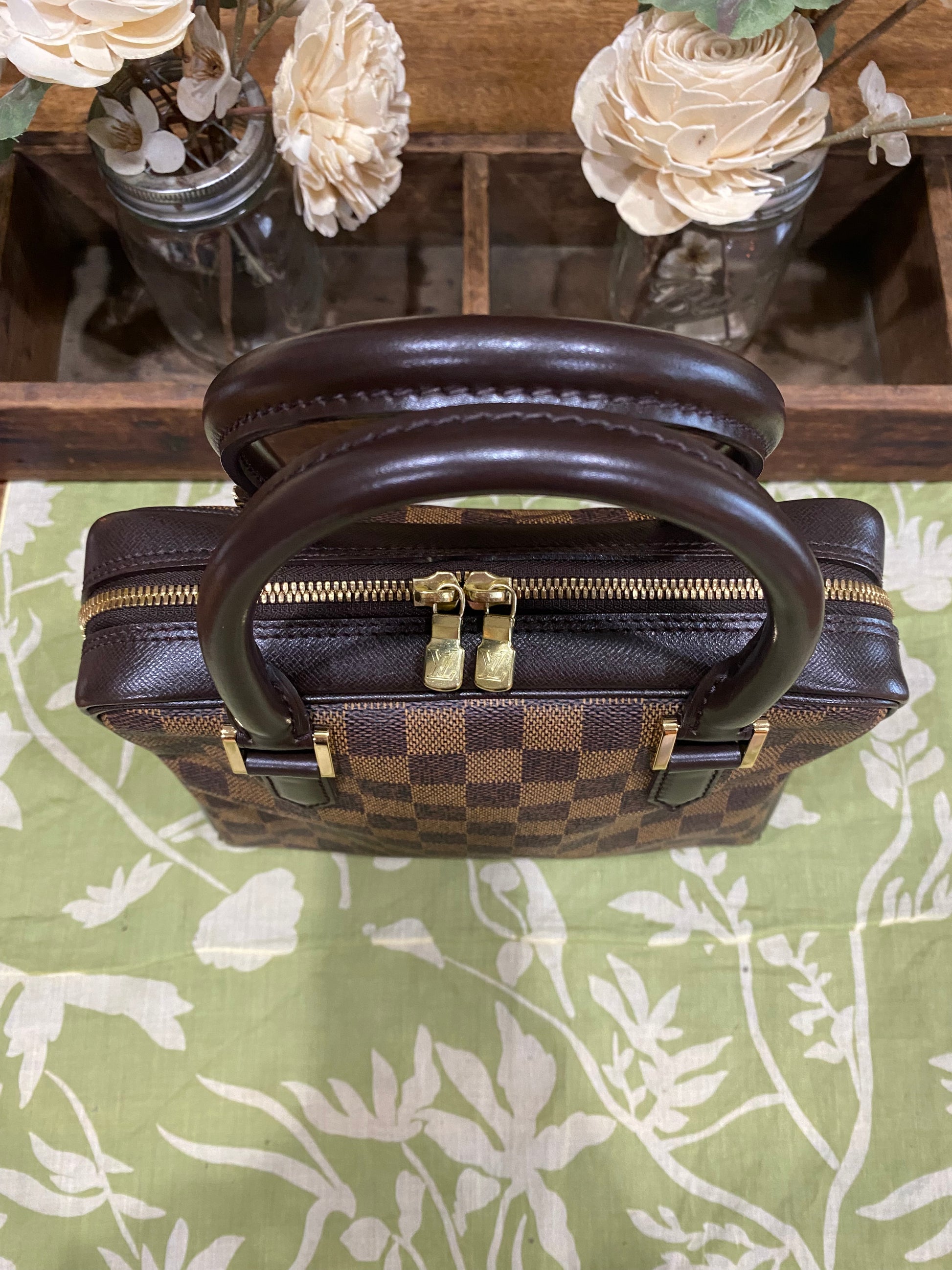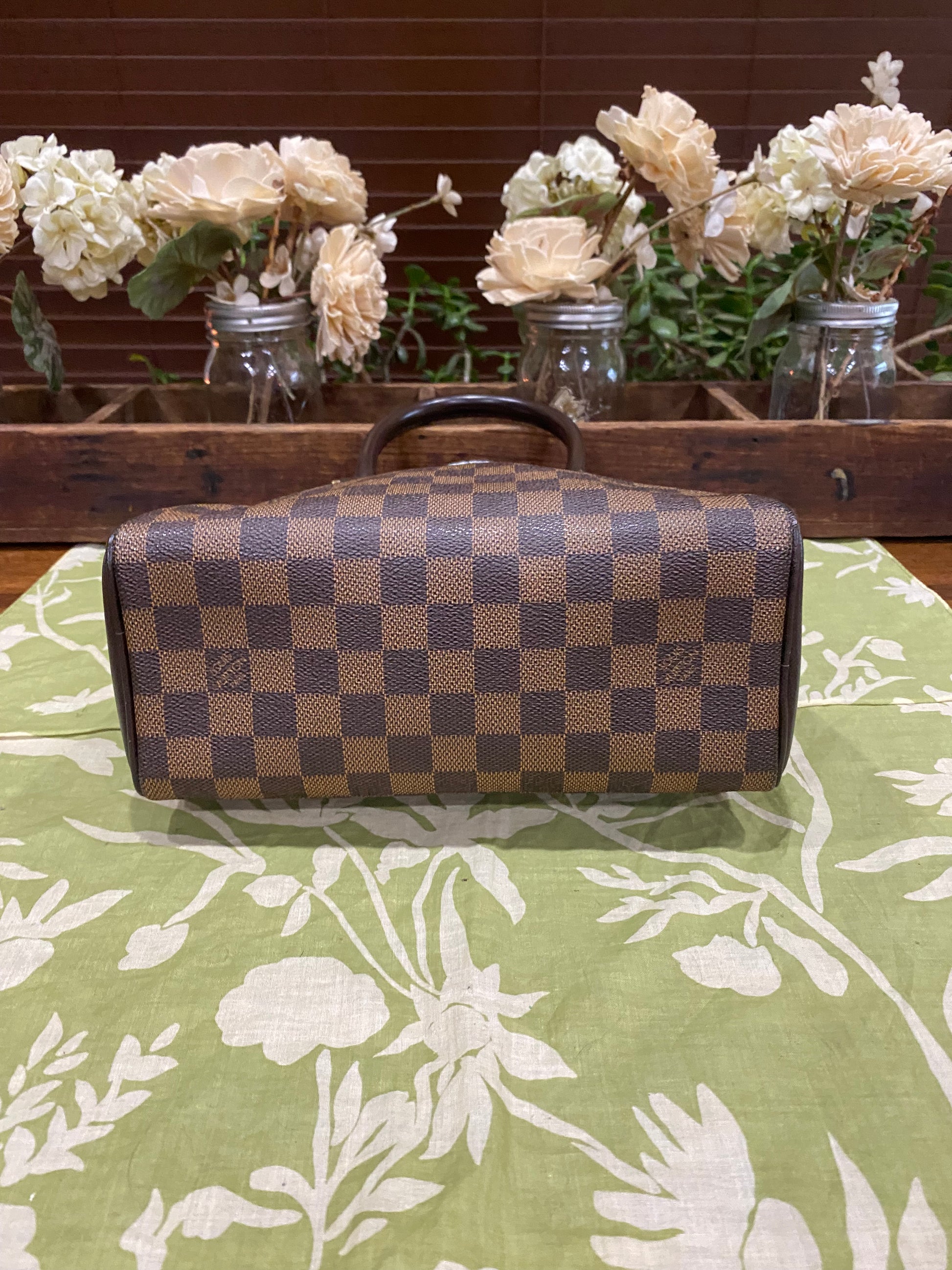 Beautiful condition❤️ Canvas is free of cracking or tears, print is vibrant, handles are clean and look amazing, leather piping has minimal rubs, interior shows signs of normal light use, has pen mark inside the zippered pocket, zippers run smooth, hardware is shiny, no foul smells.