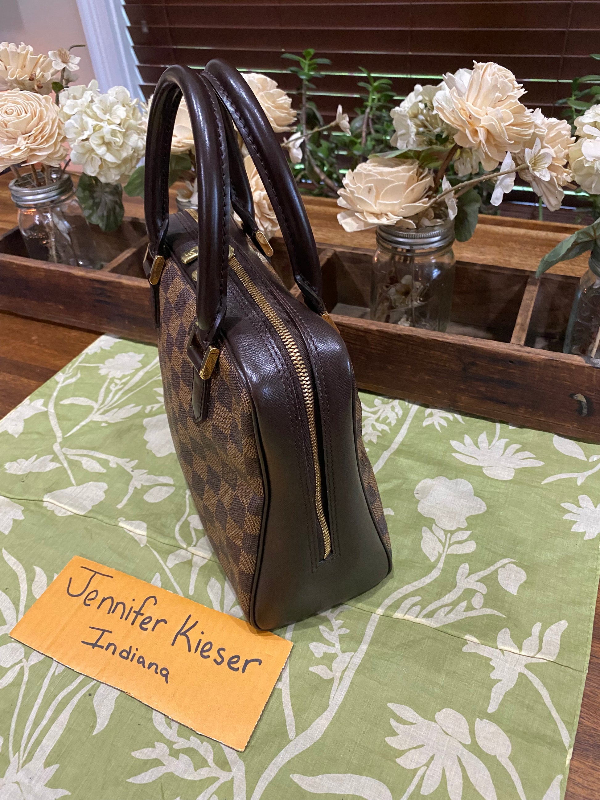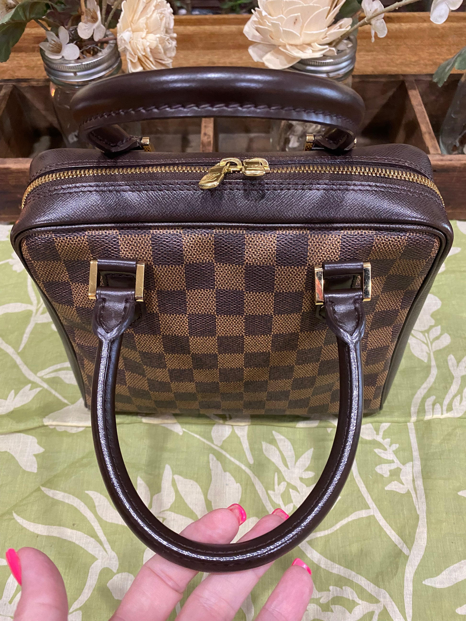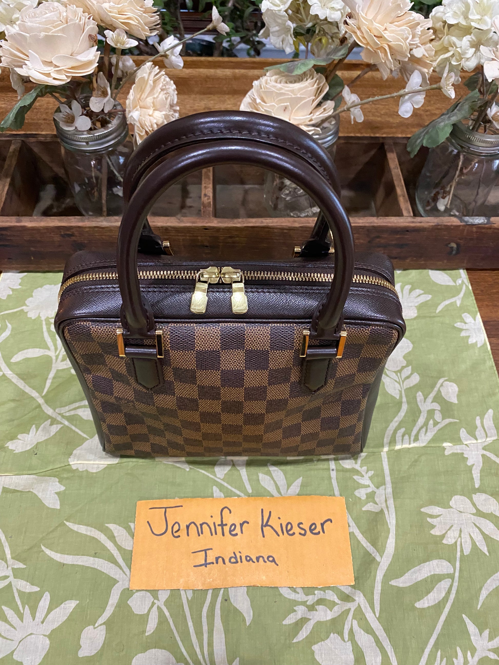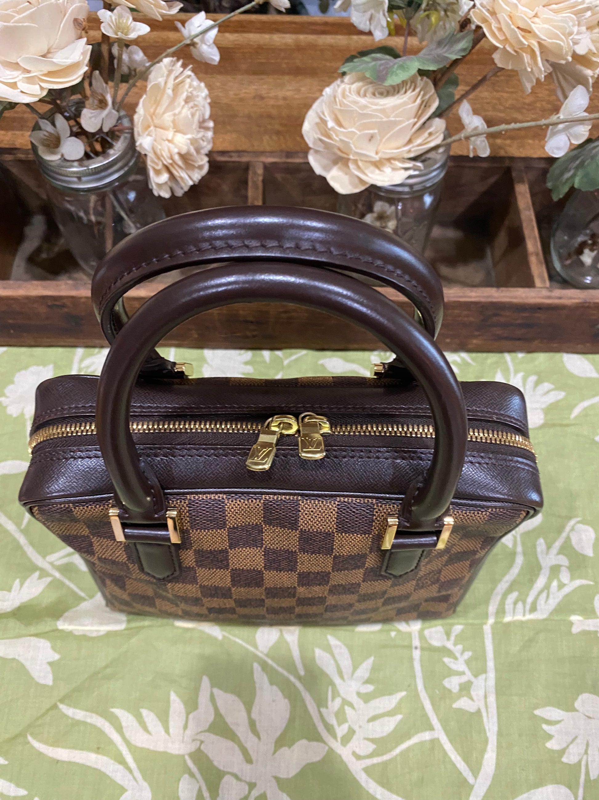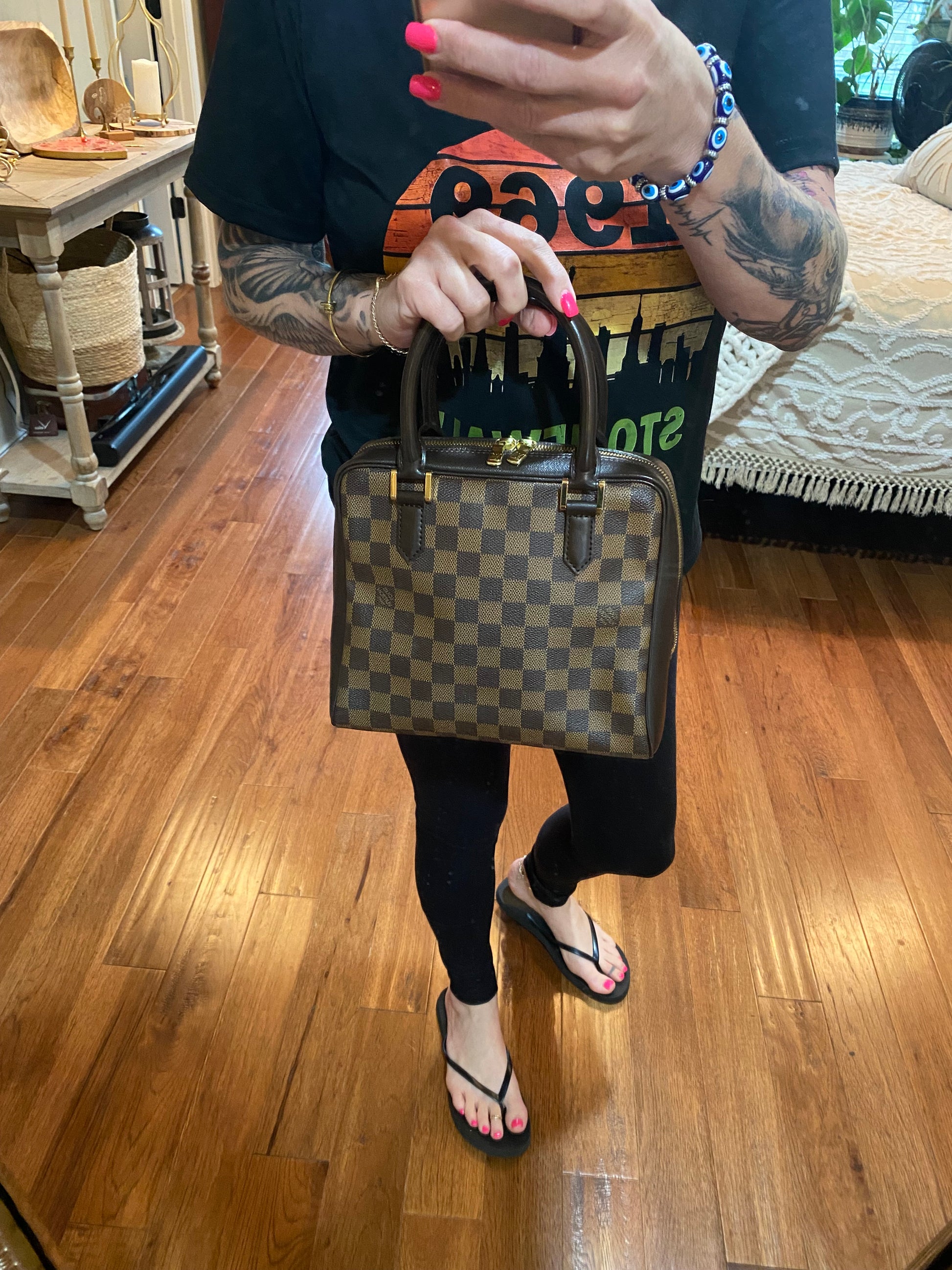 Beautiful condition❤️ Canvas is free of cracking or tears, print is vibrant, handles are clean and look amazing, leather piping has minimal rubs, interior shows signs of normal light use, has pen mark inside the zippered pocket, zippers run smooth, hardware is shiny, no foul smells.