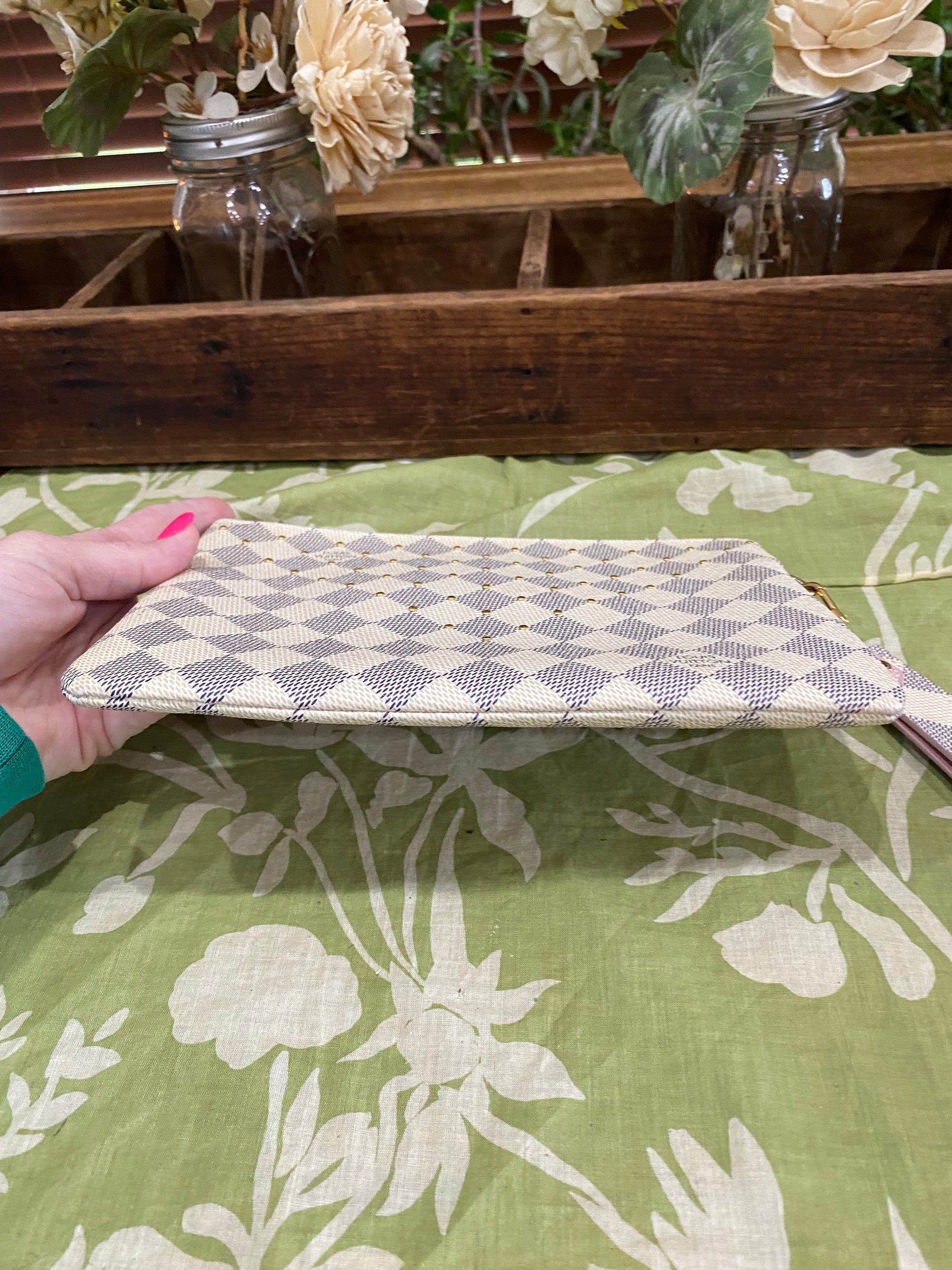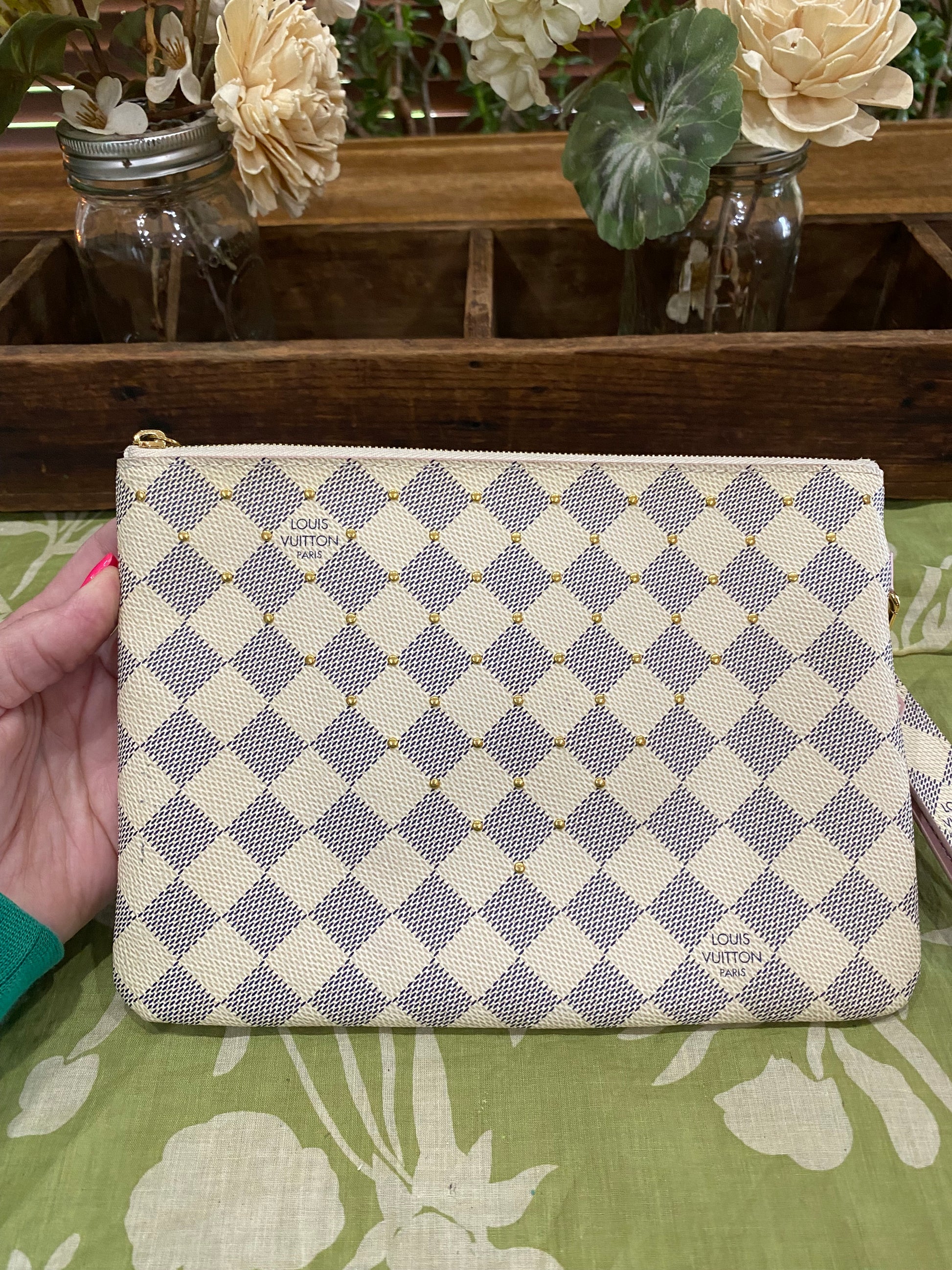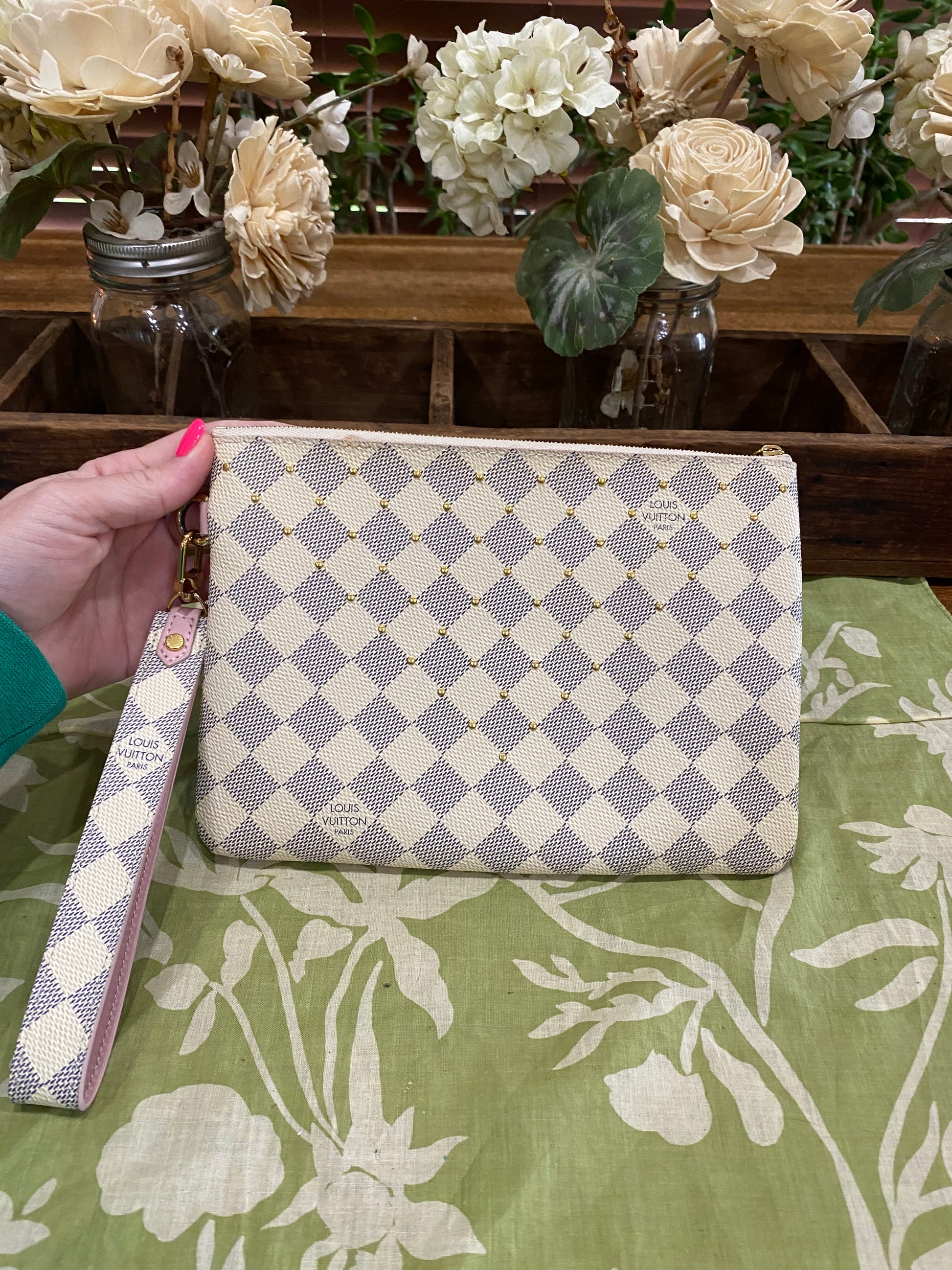 City Pouch- studded DA print with removable wristlet strap (hard to find piece)