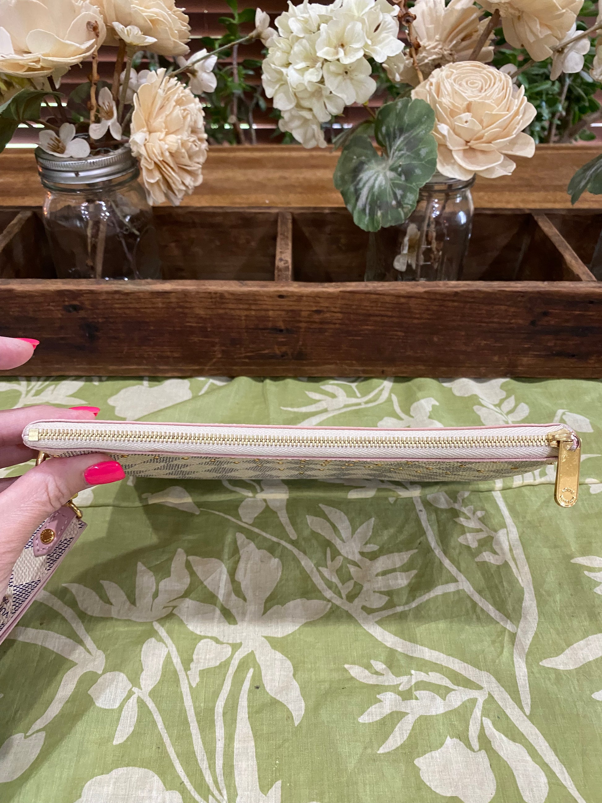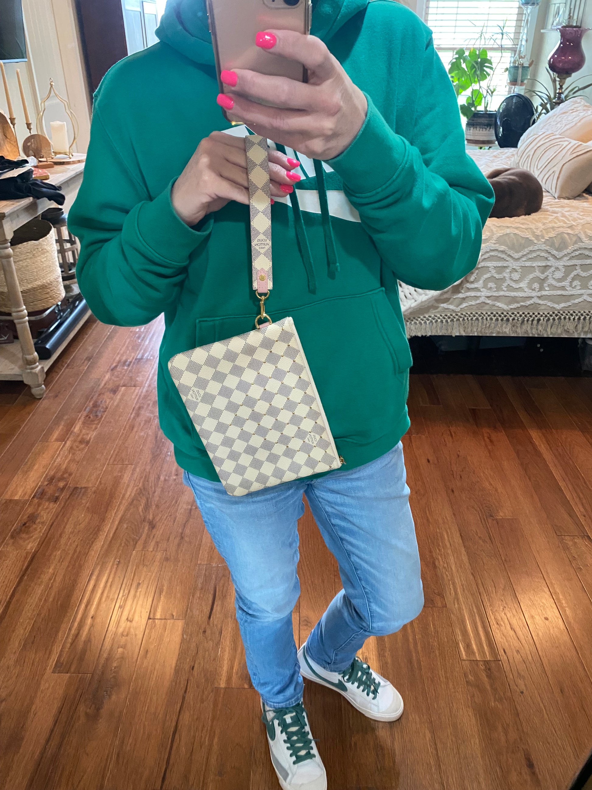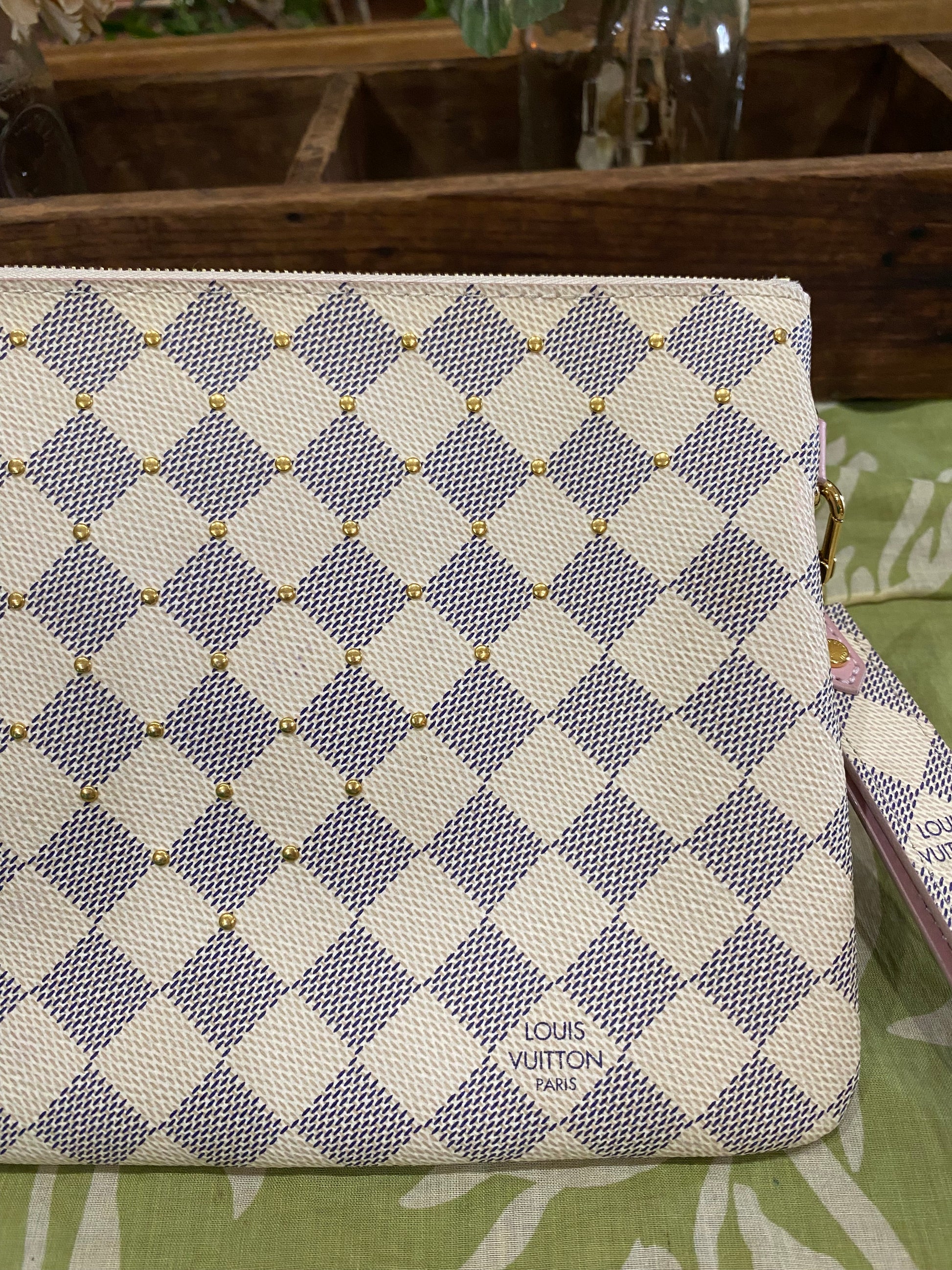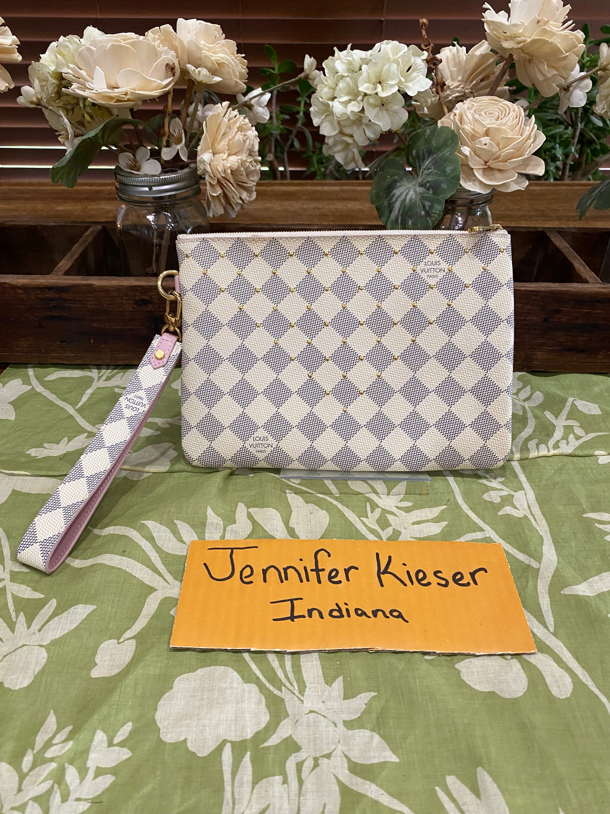 City Pouch- studded DA print with removable wristlet strap (hard to find piece)