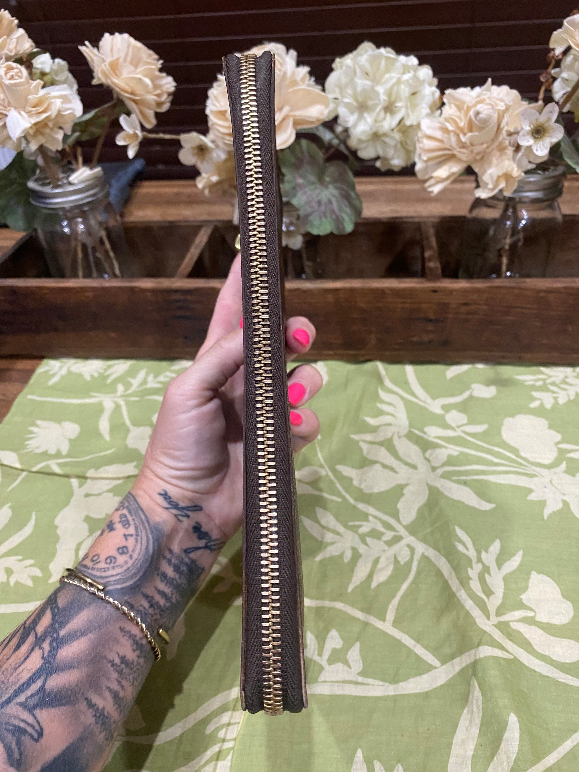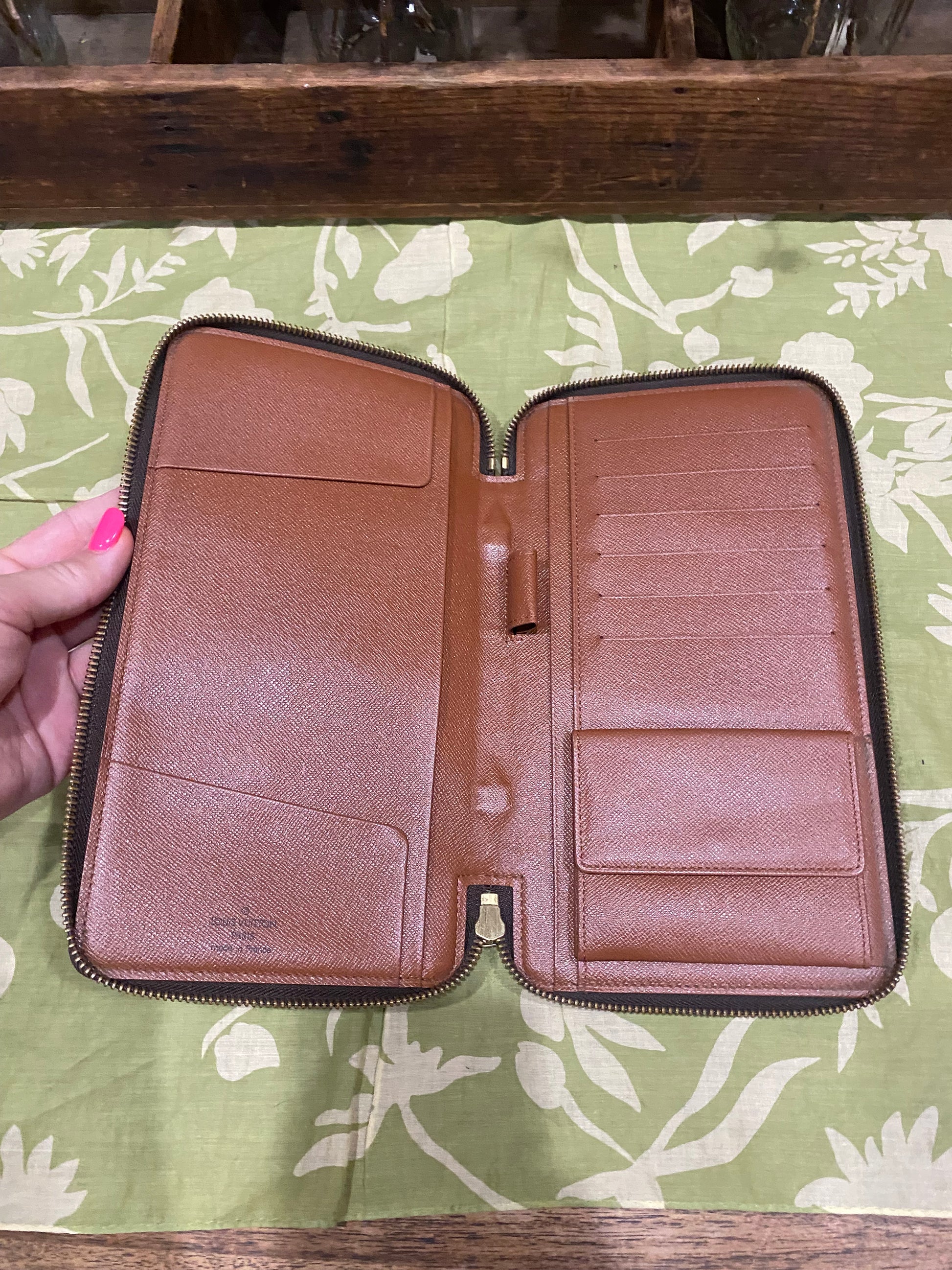Daily Organizer- holds cell phone, cash, coins, credit cards, passports, boarding passes... pictured holding a iPhone 15 Pro