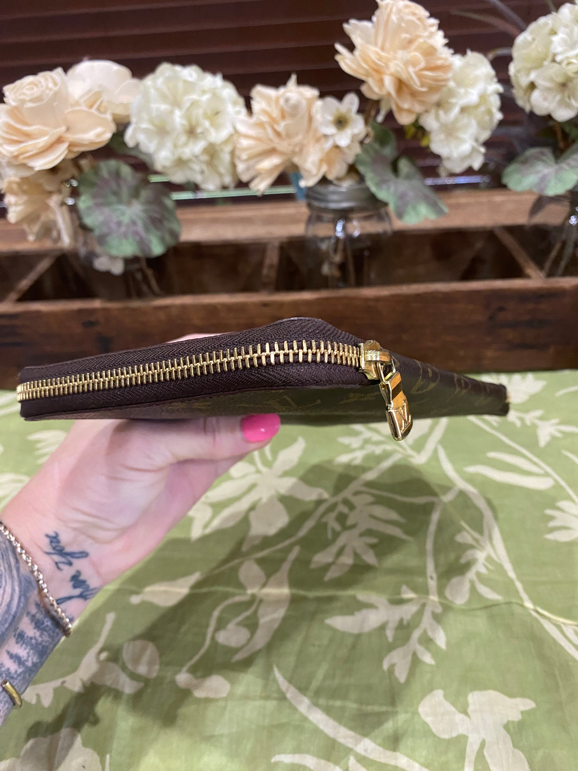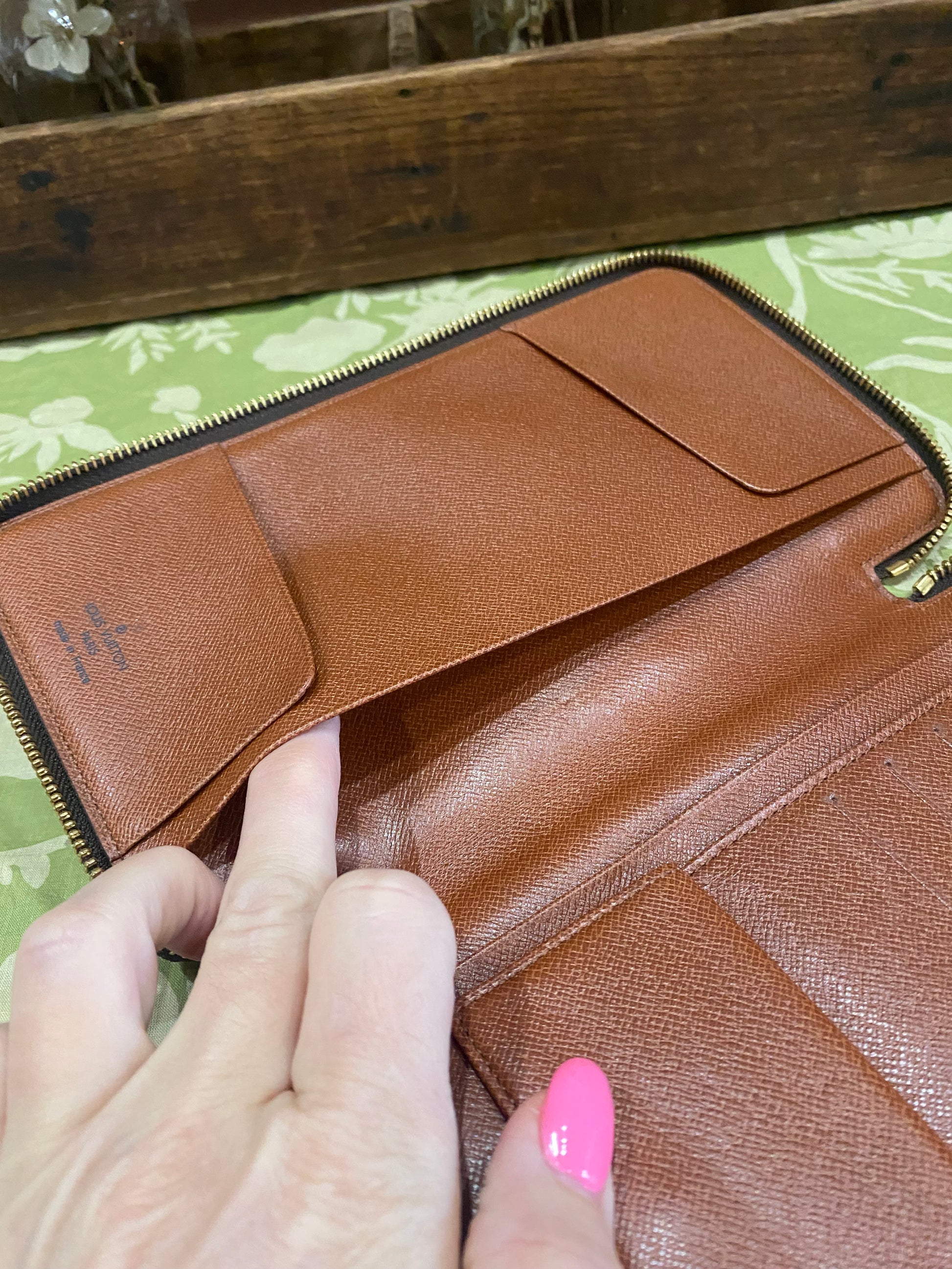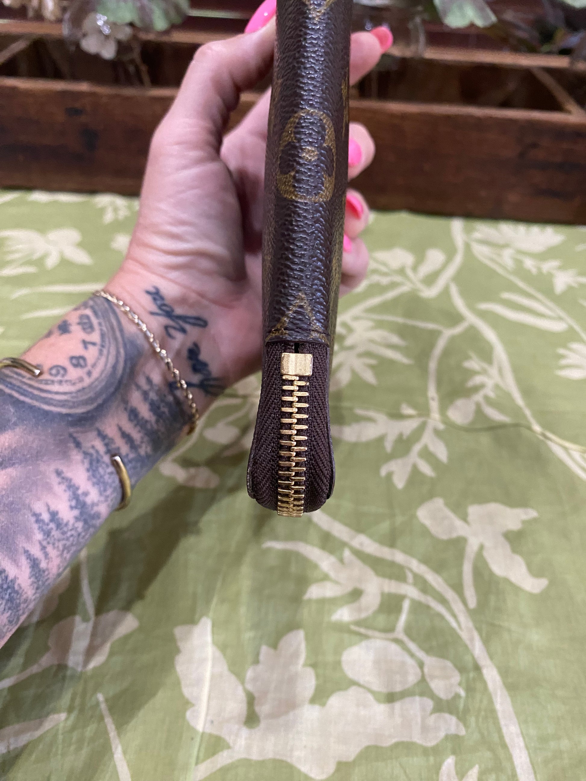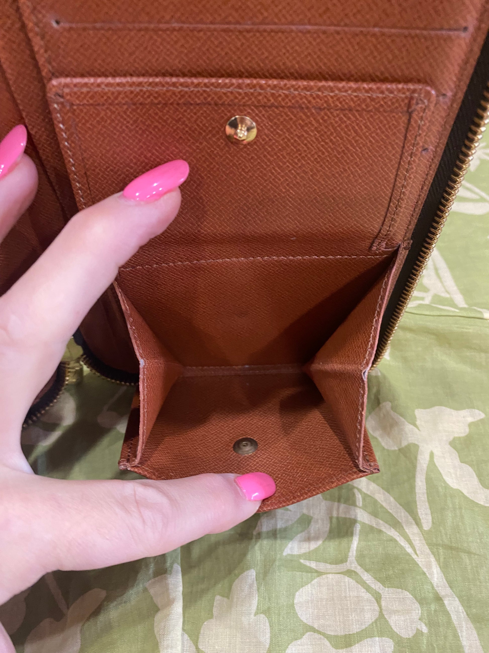 Canvas is beautiful- no cracking or tears, print is vibrant, zipper runs smooth, zipper has some tarnish, coin compartment snap is secure, credit card slots are excellent-no stretching, the backside of pockets have light dry peeling/no tackiness, no foul smells.