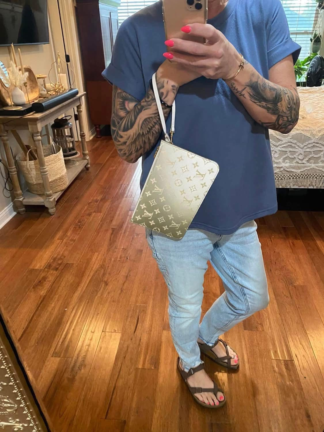 NEW. Never used or carried, perfect condition, no smells. Absolutely beautiful!! Pictured holding an iPhone 15 Pro for sizing reference.