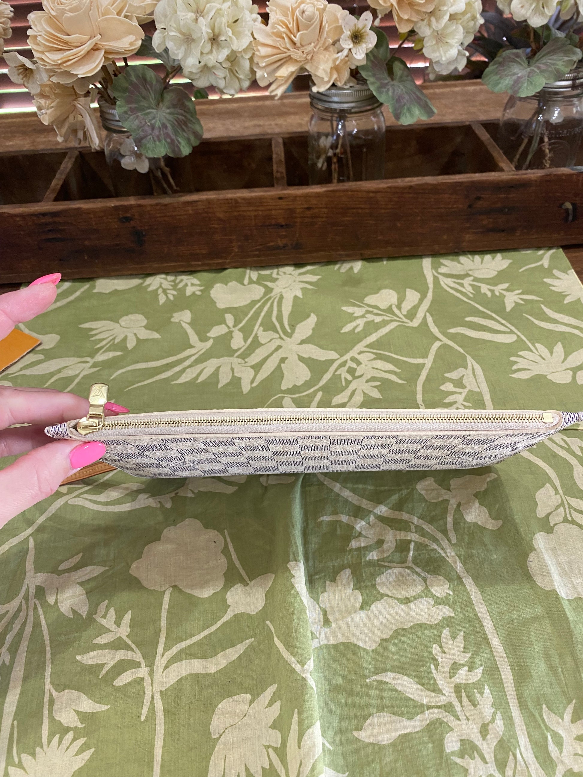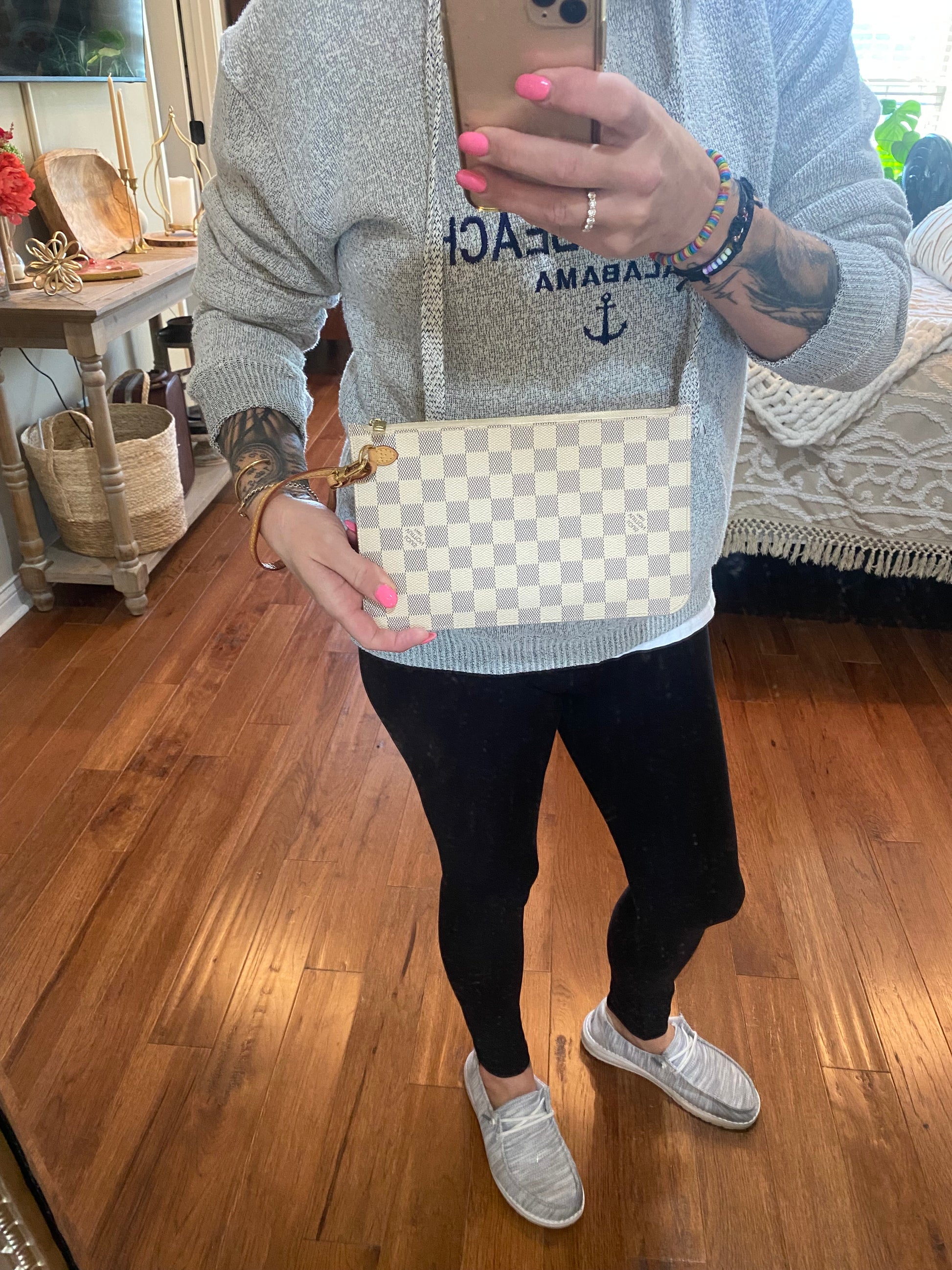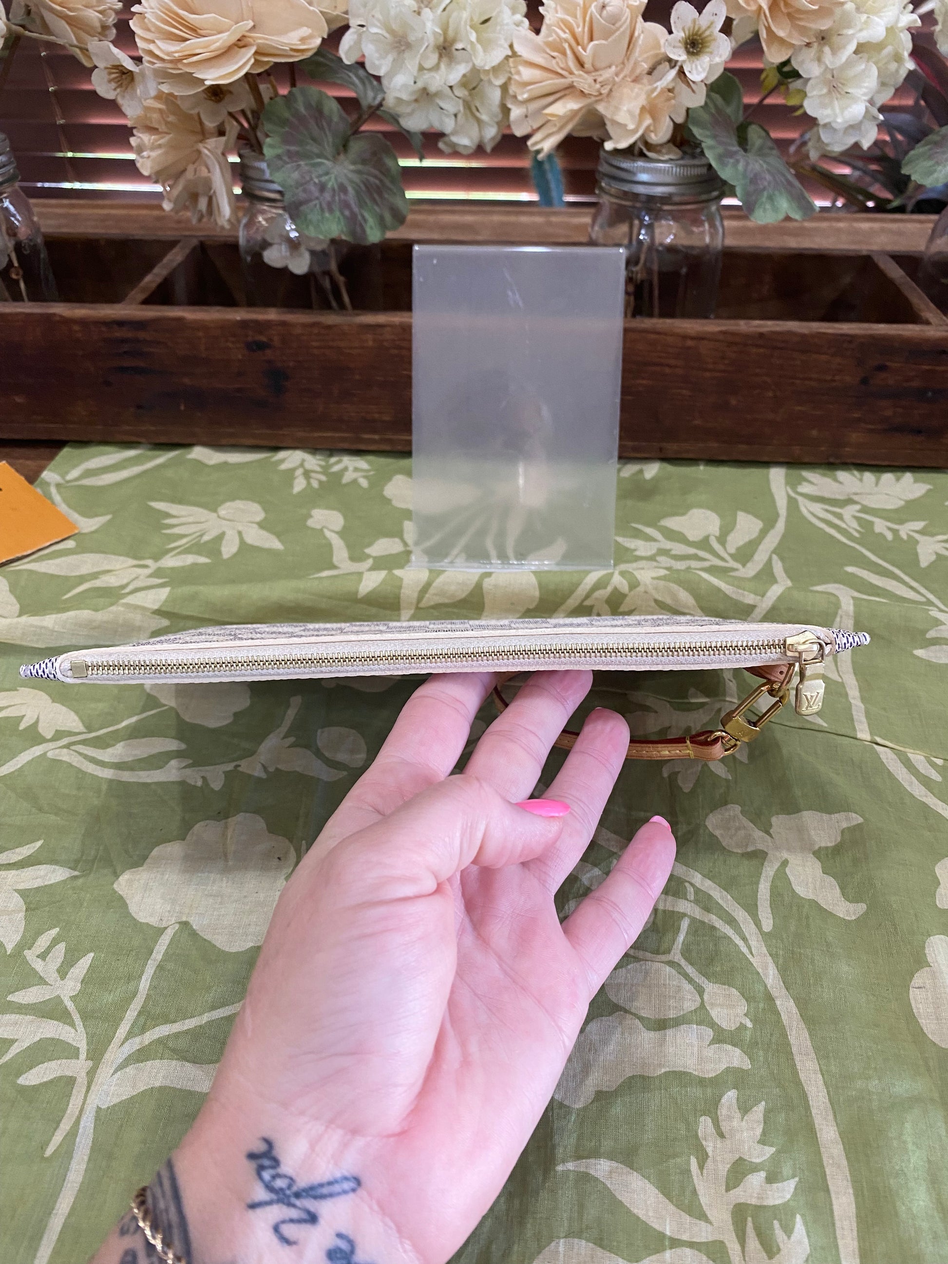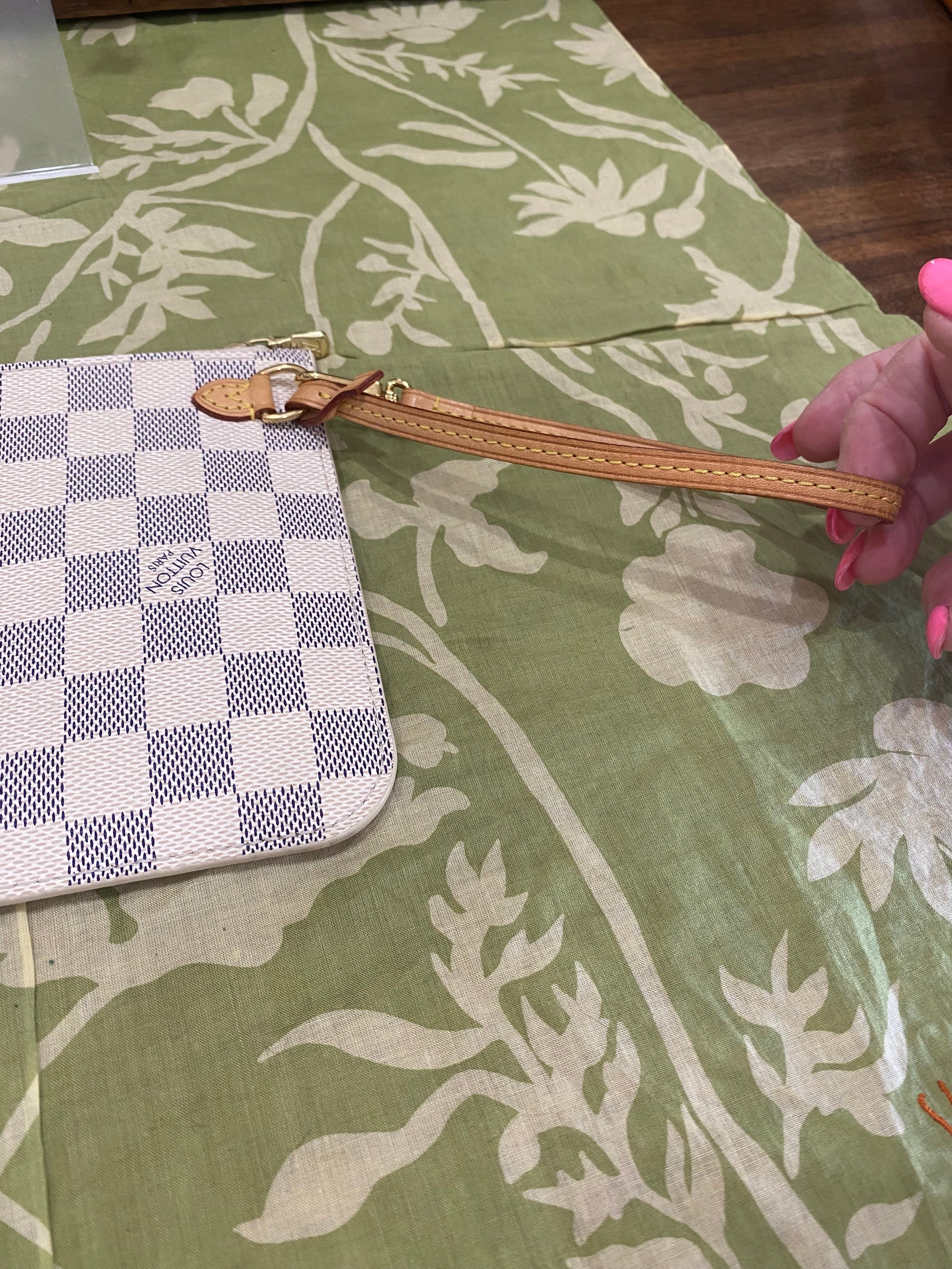 Neverfull Pouch GM in DA Pictured holding an iPhone 15 Pro.