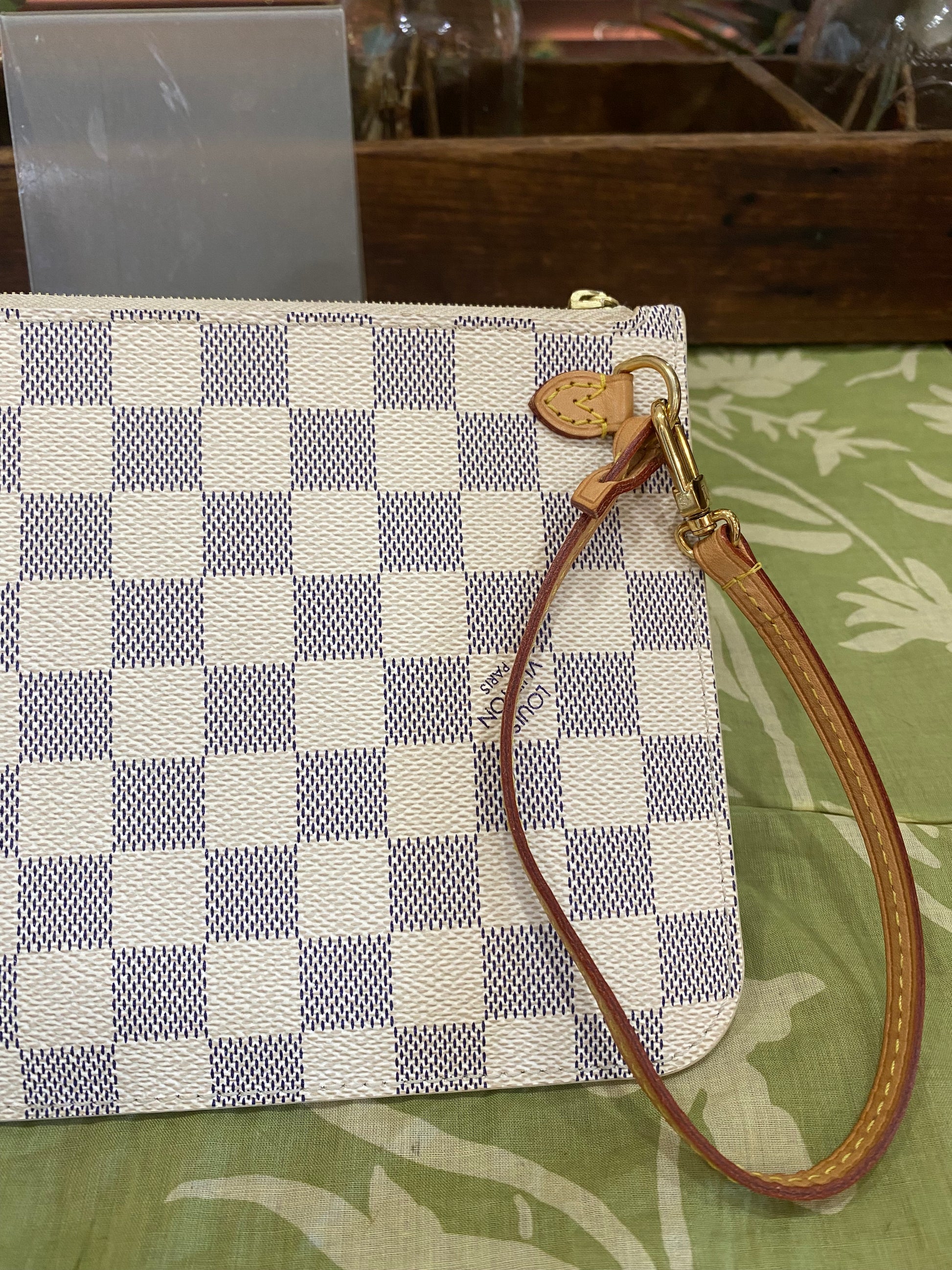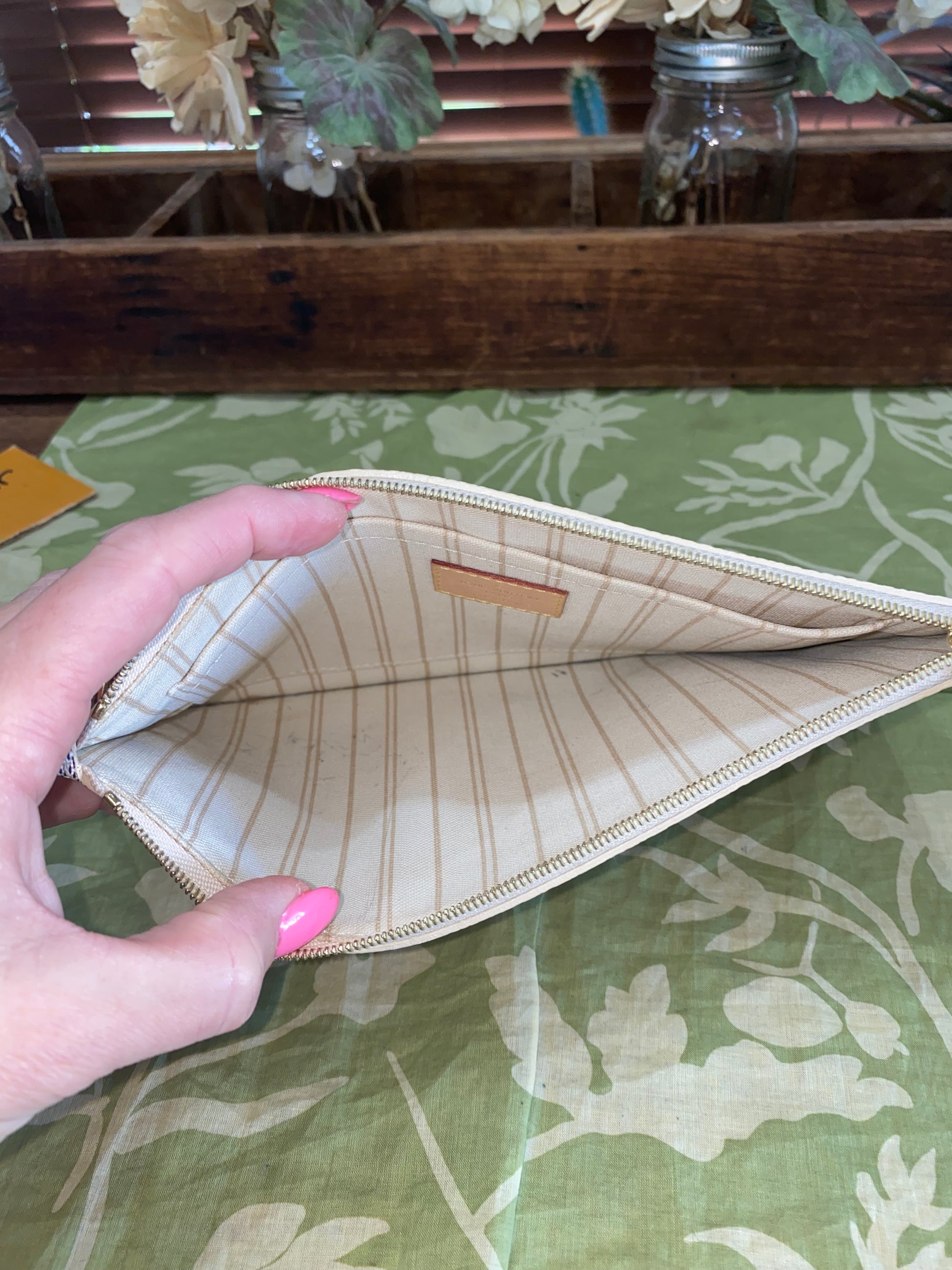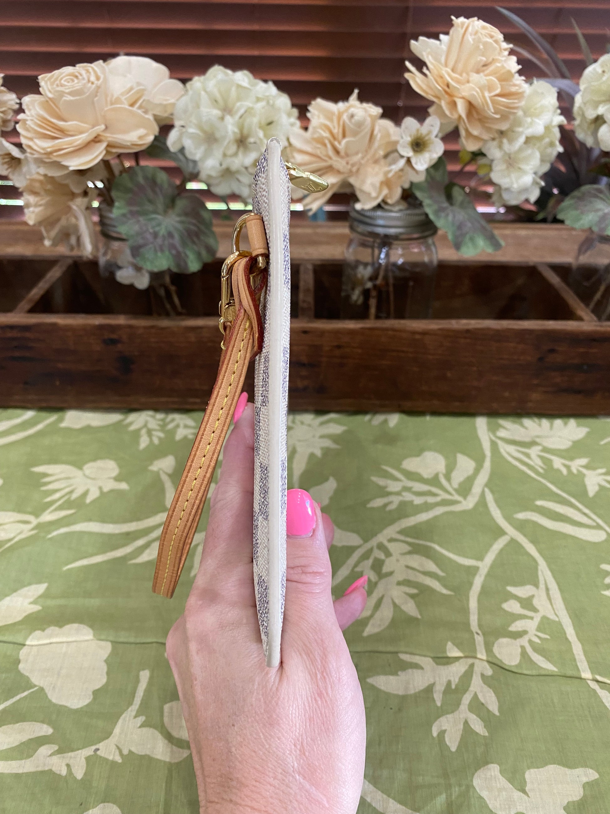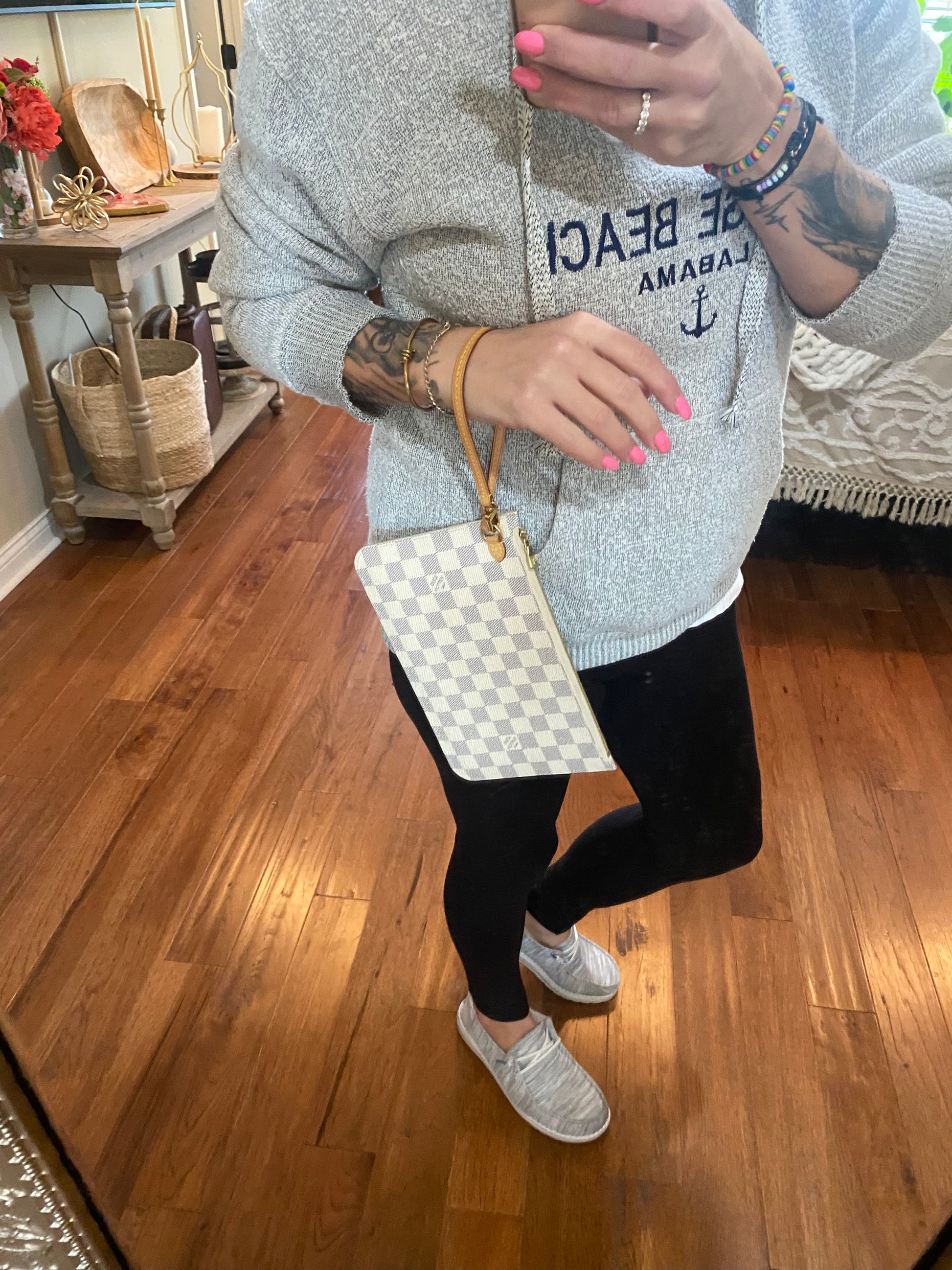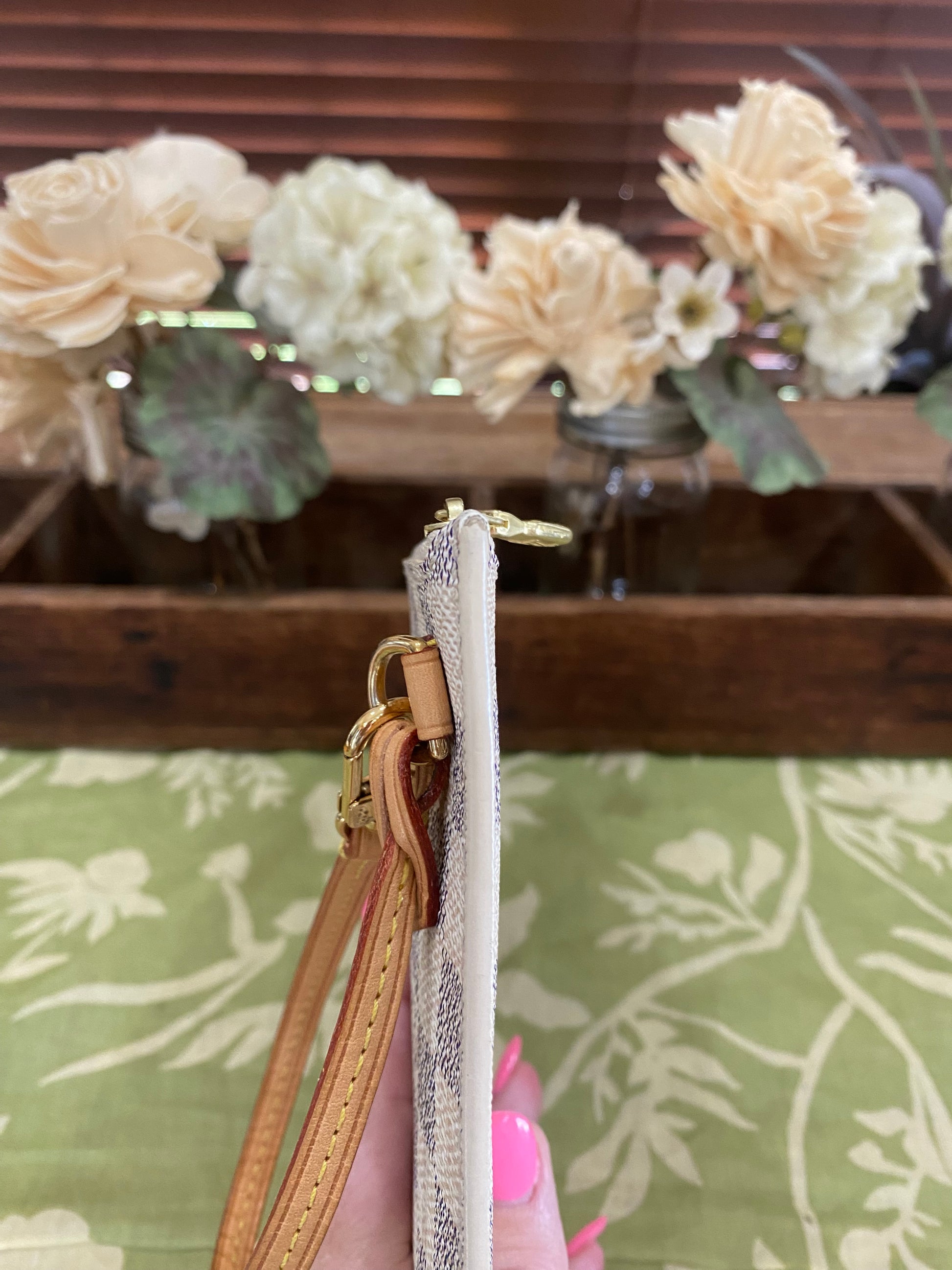 Neverfull Pouch GM in DA Pictured holding an iPhone 15 Pro.