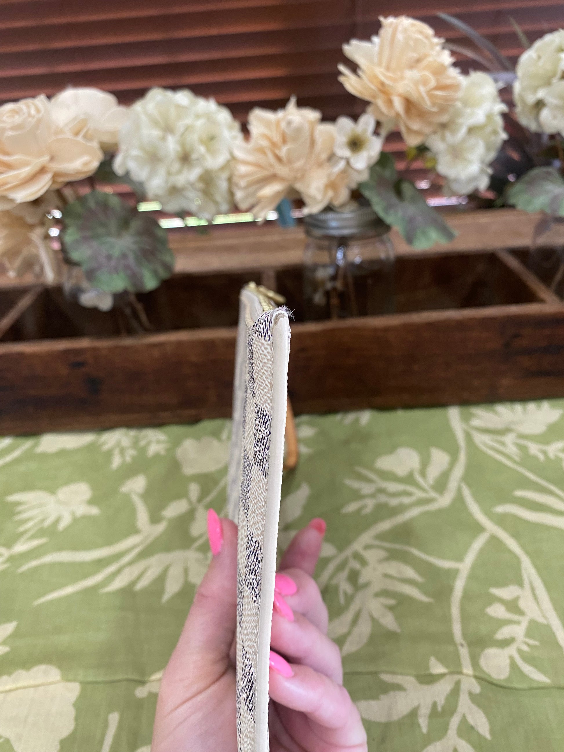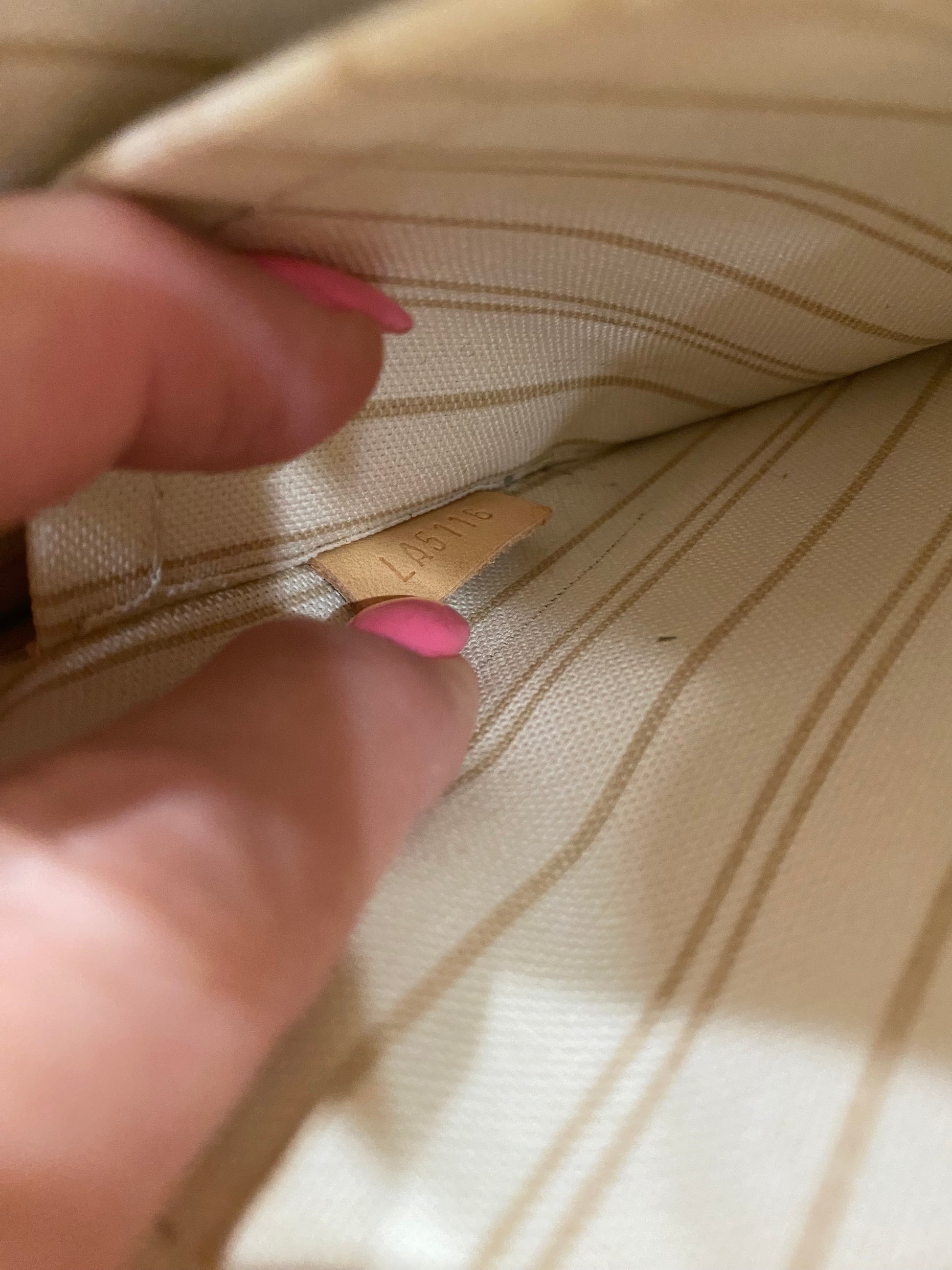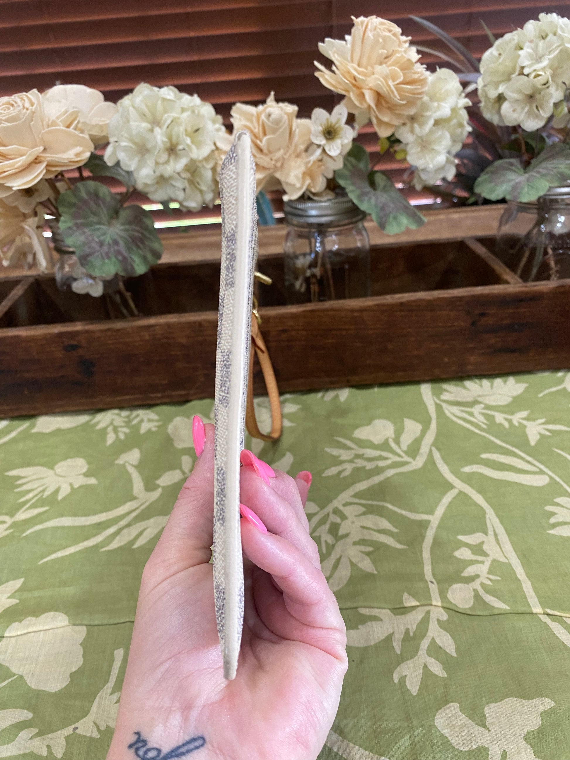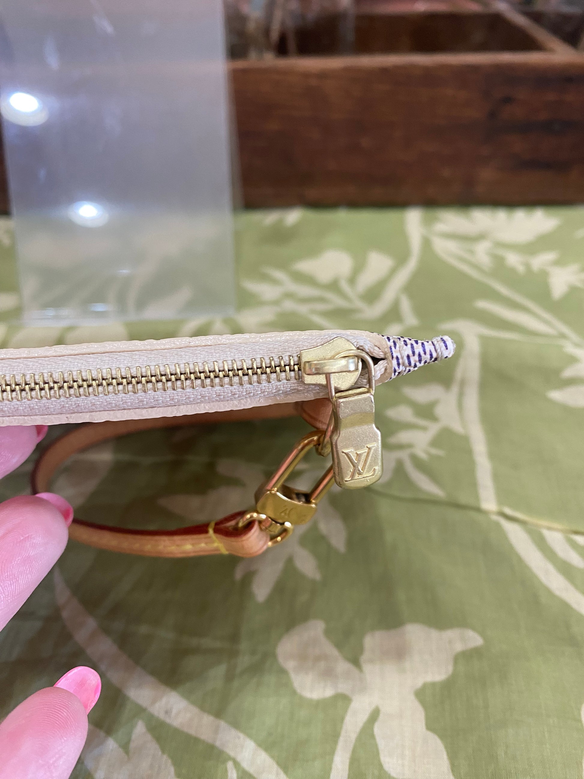 Neverfull Pouch GM in DA Pictured holding an iPhone 15 Pro.