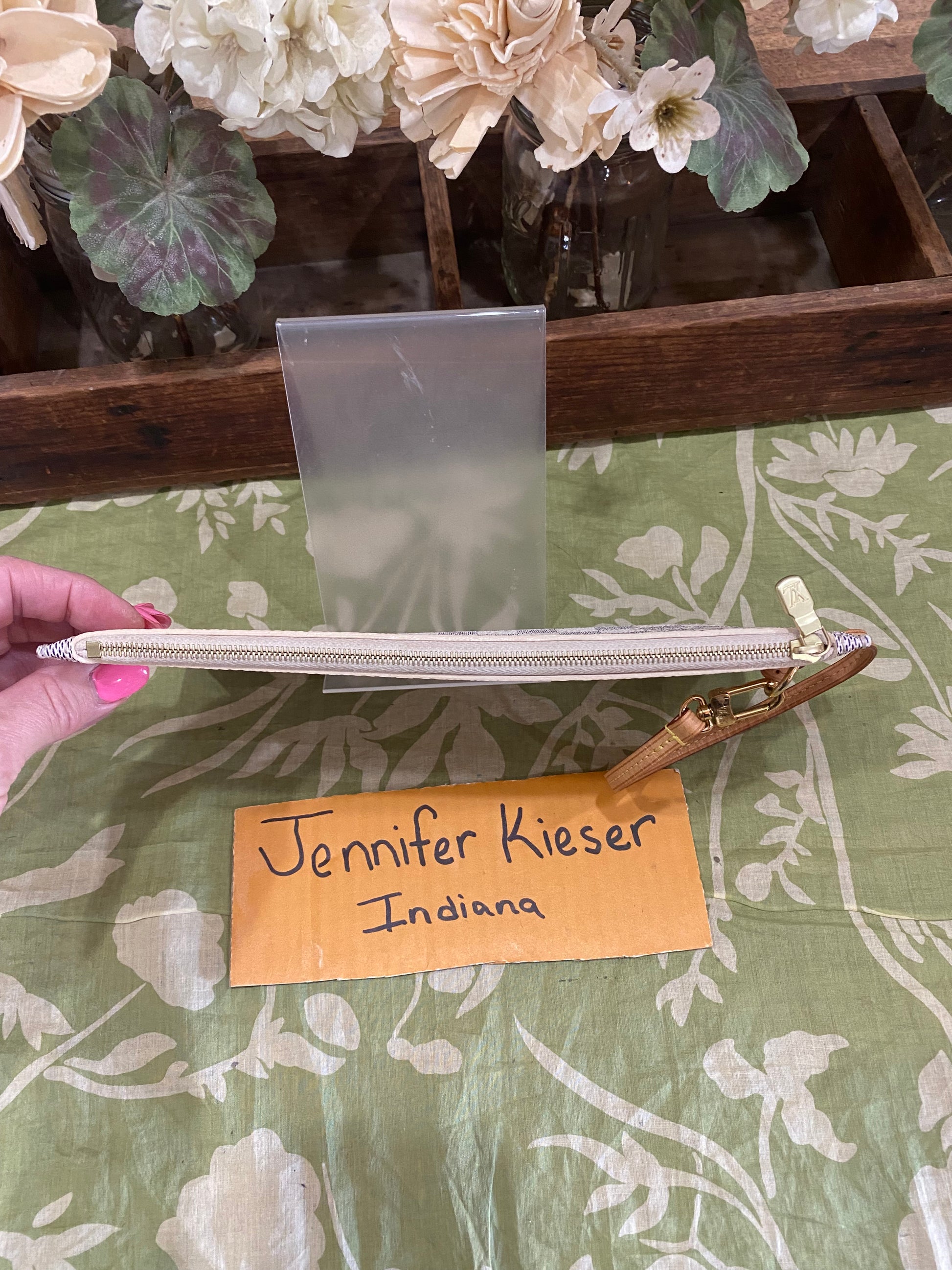 Canvas looks excellent – no cracking or tears, print is clean and bright, glazing has some rubs, zipper runs smooth, interior has marks/stains/pen marks/dust, no foul smells.