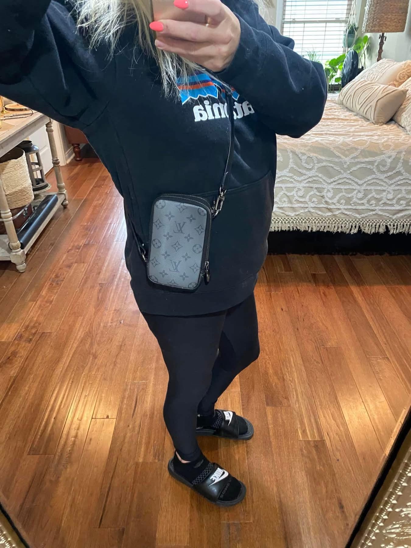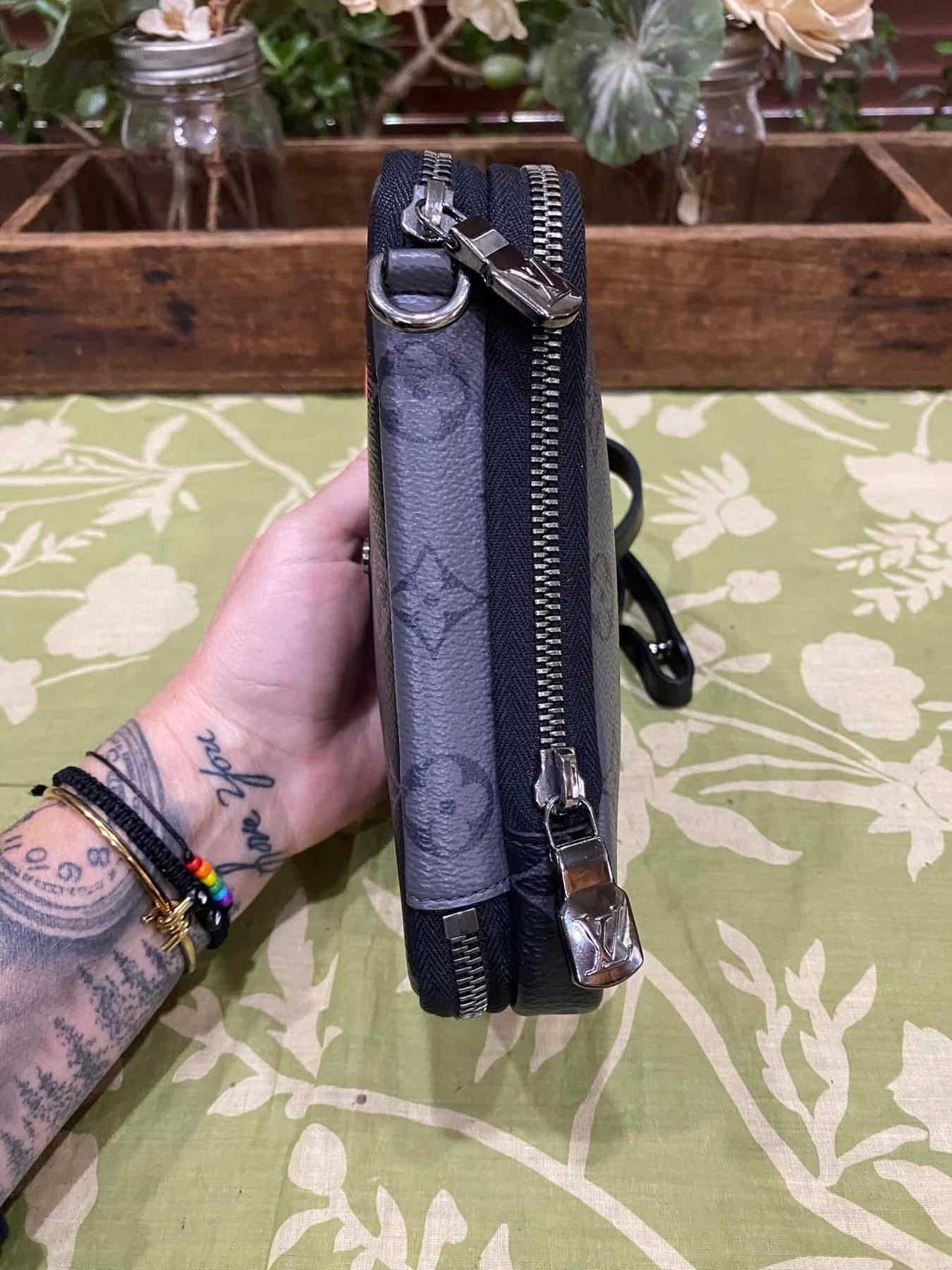Unisex! Several wearing options- wear crossbody, slide onto a belt, or doubles as a wallet with removable strap. Easily fits iPhone 15 Pro max. Two compartments, perfect for travel!