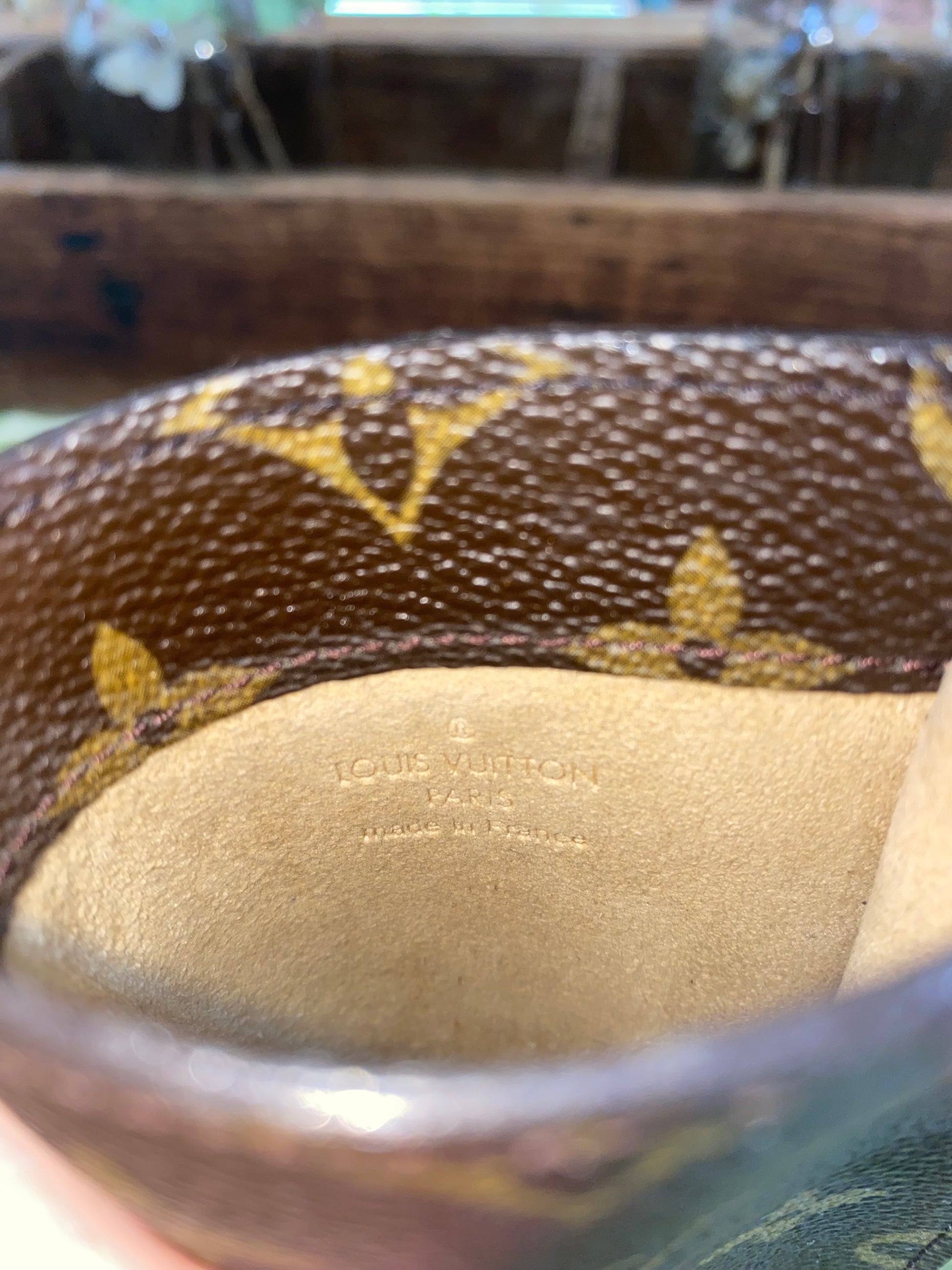 Excellent condition. Canvas is free of cracking or tears, print is vibrant, perfect structure, glazing is intact, interior is clean, no foul smells. Interior is a soft alcantara lining to protect your eyeglasses or sunglasses.