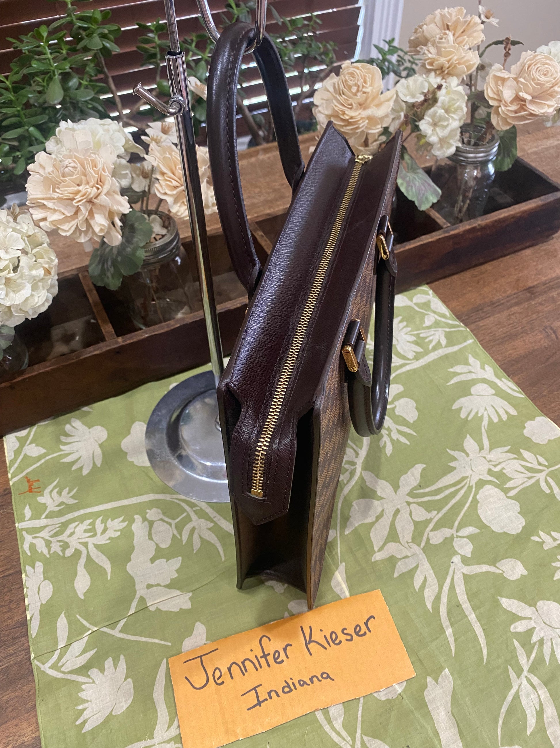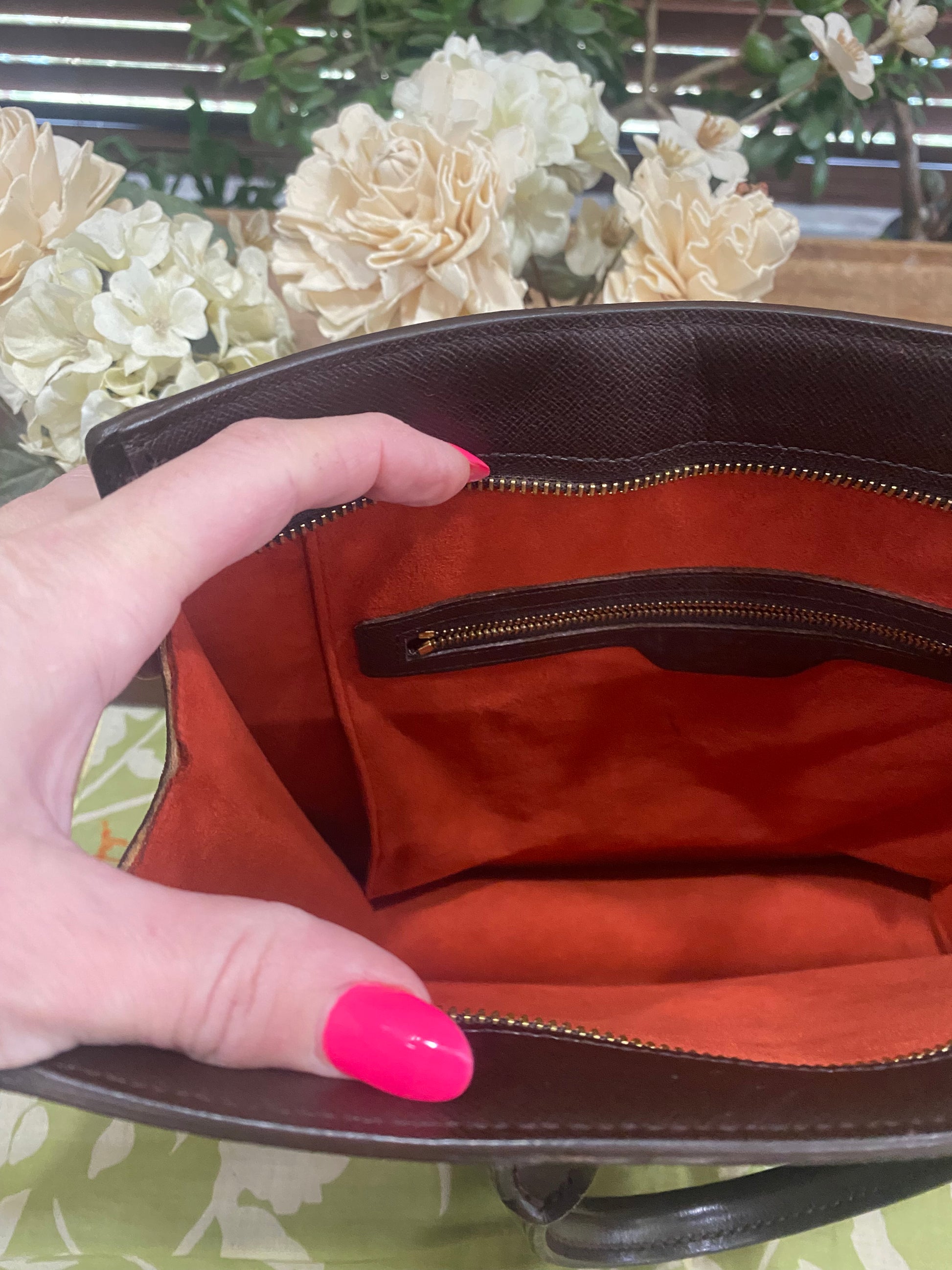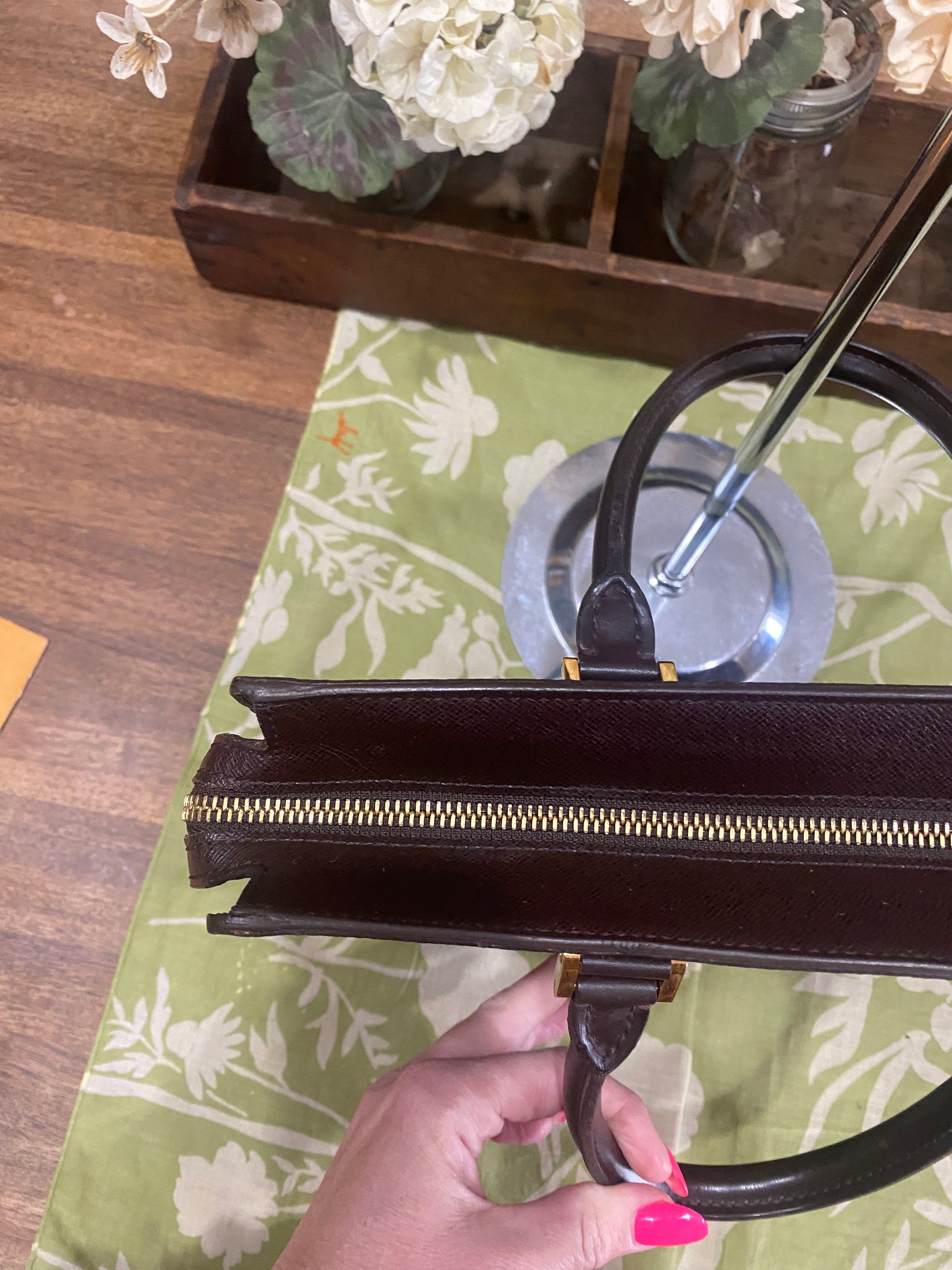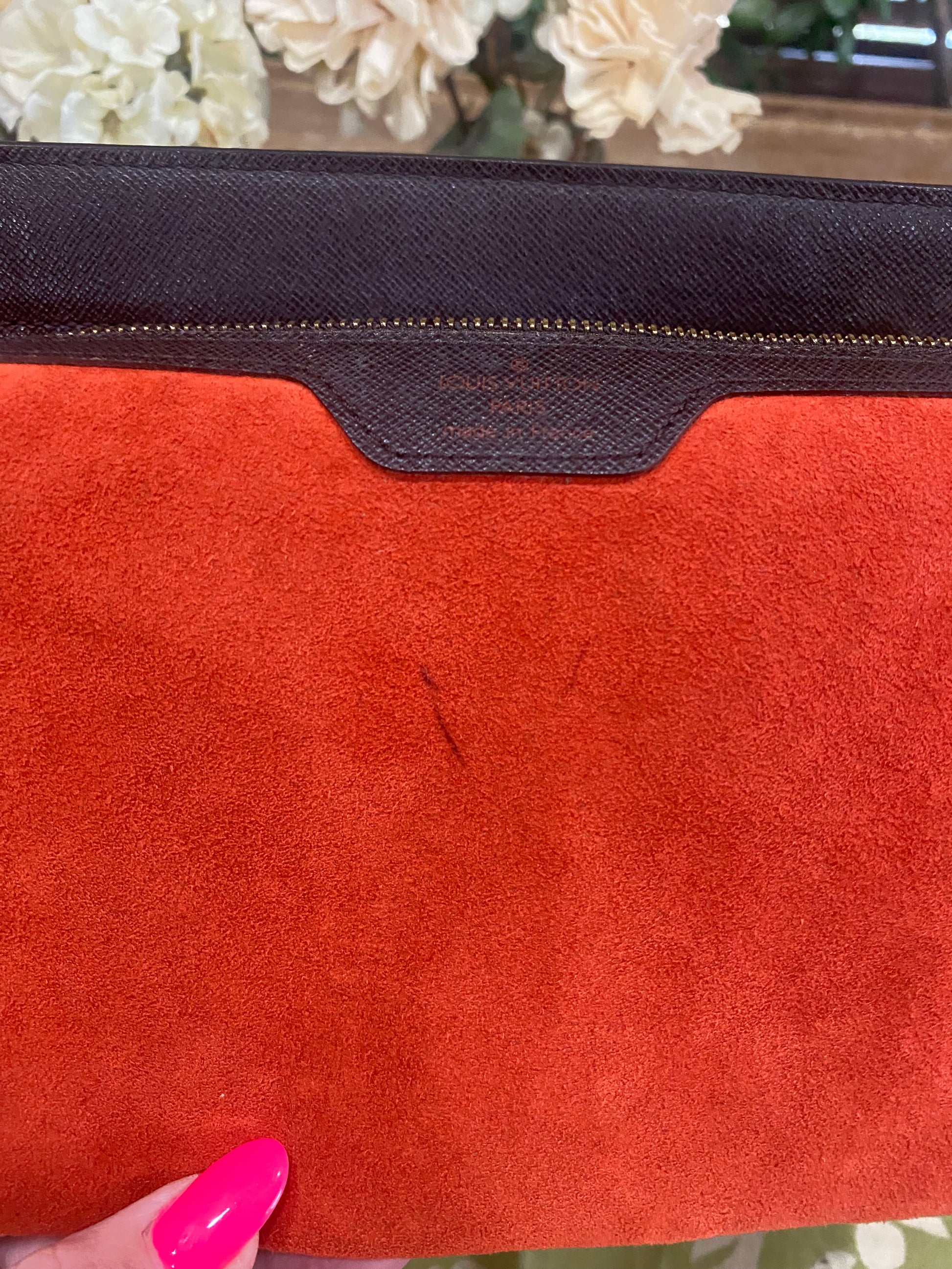 Canvas is stunning- no cracking or tears, print is vibrant, perfect structure, zipper runs smooth, hardware is shiny, glazing has some rubs-hardly noticeable and doesn’t affect use, interior shows signs of normal light wear-light stains/rubs, no foul smells.