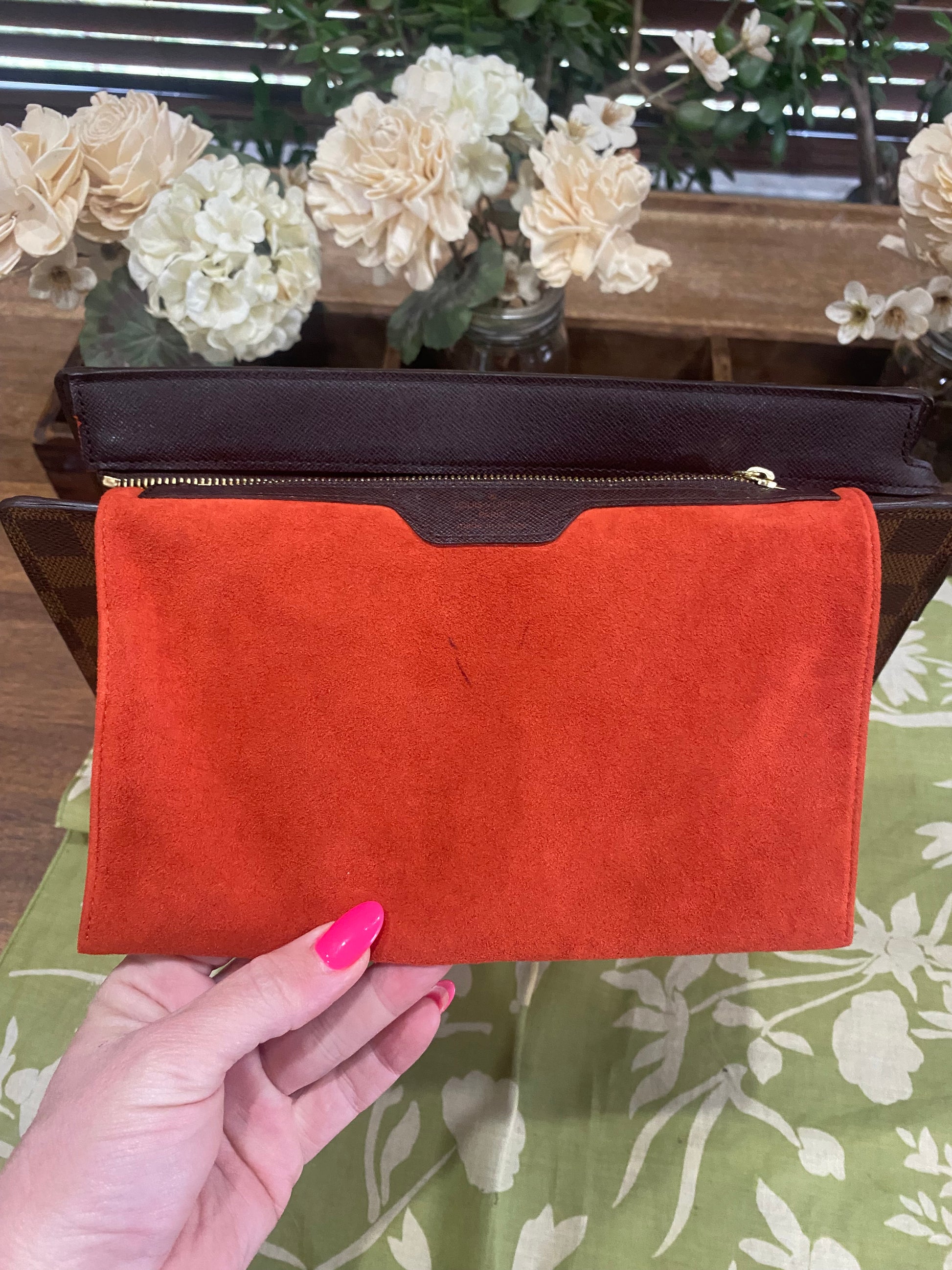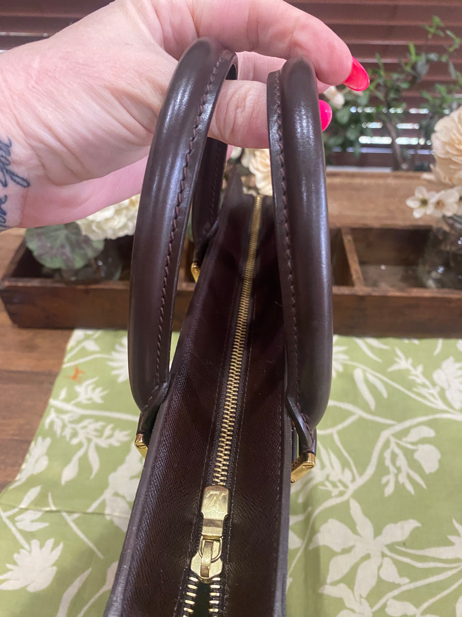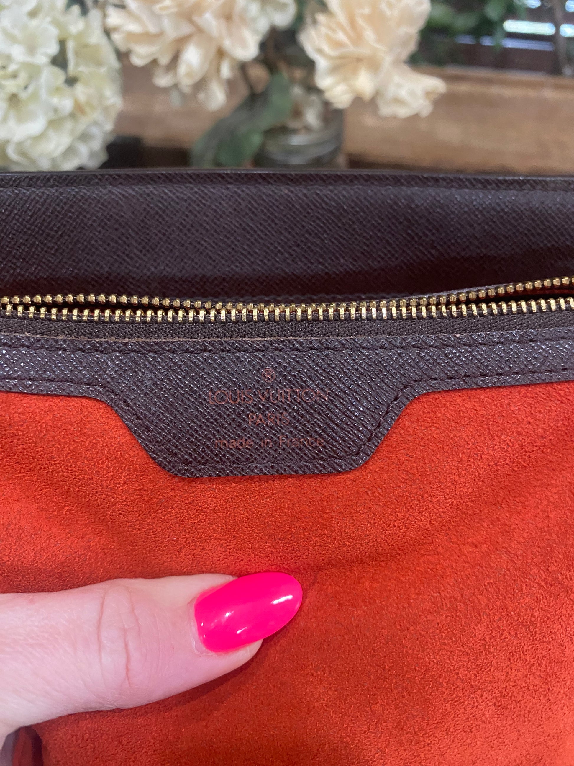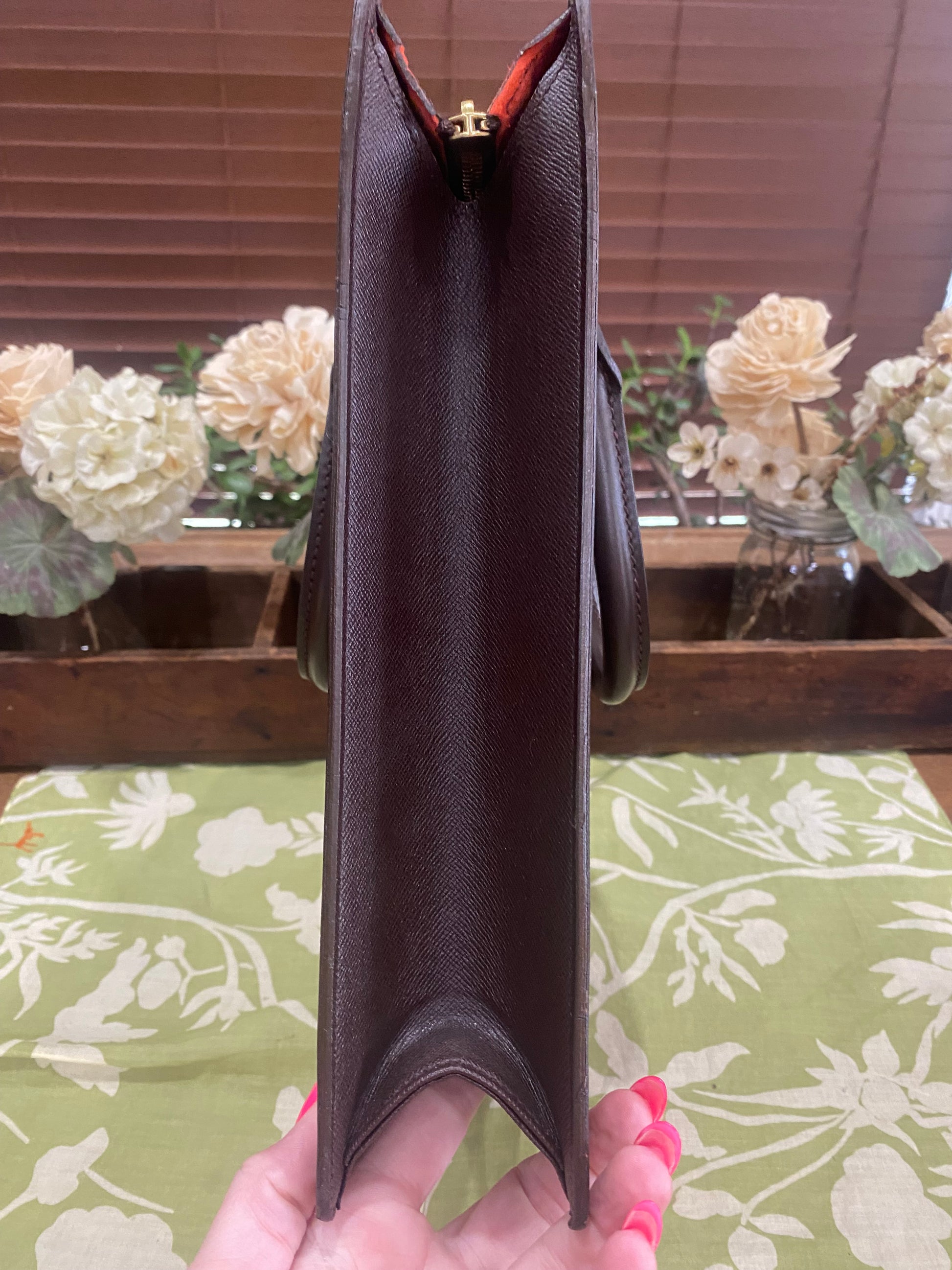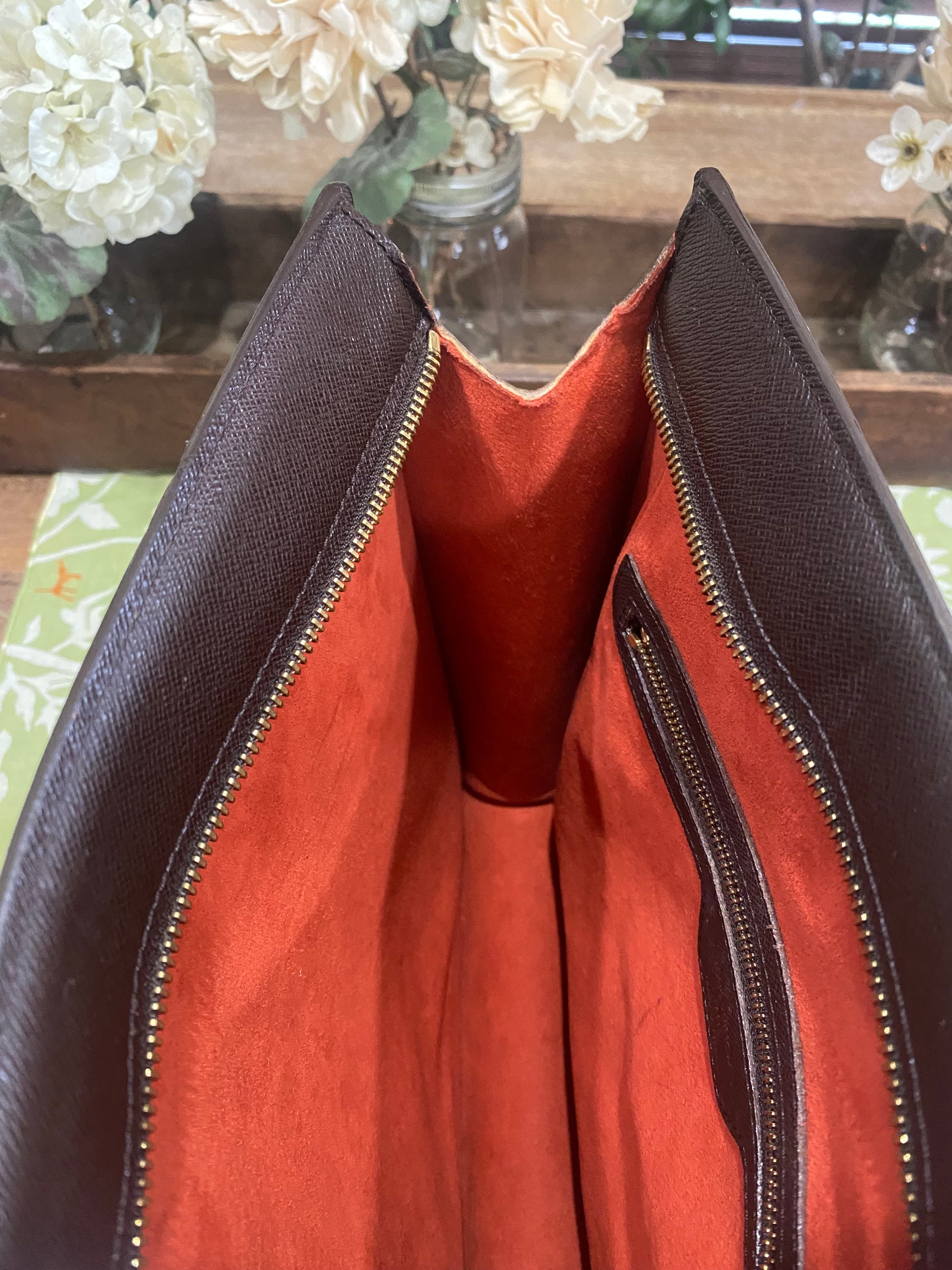 Canvas is stunning- no cracking or tears, print is vibrant, perfect structure, zipper runs smooth, hardware is shiny, glazing has some rubs-hardly noticeable and doesn’t affect use, interior shows signs of normal light wear-light stains/rubs, no foul smells.