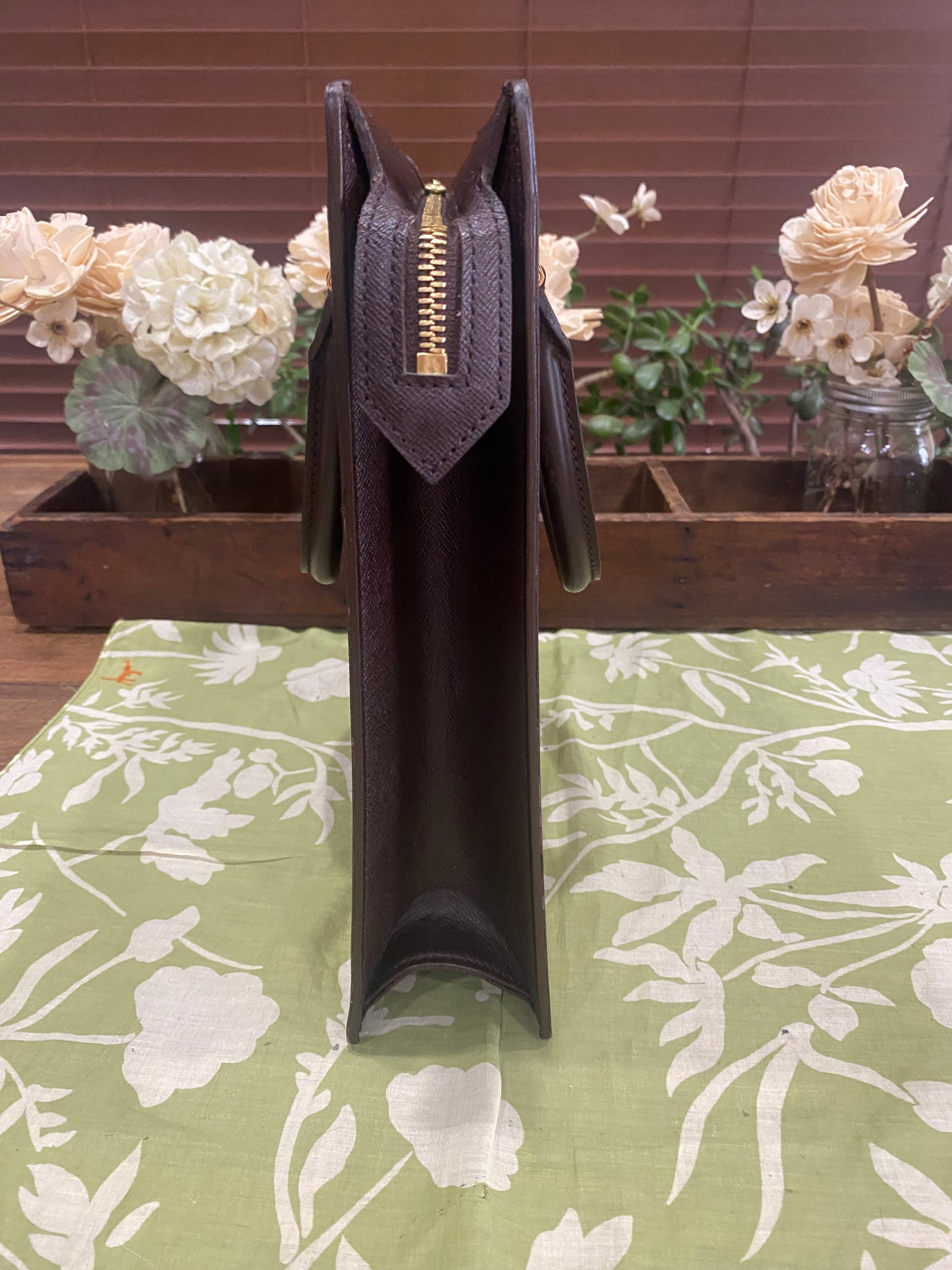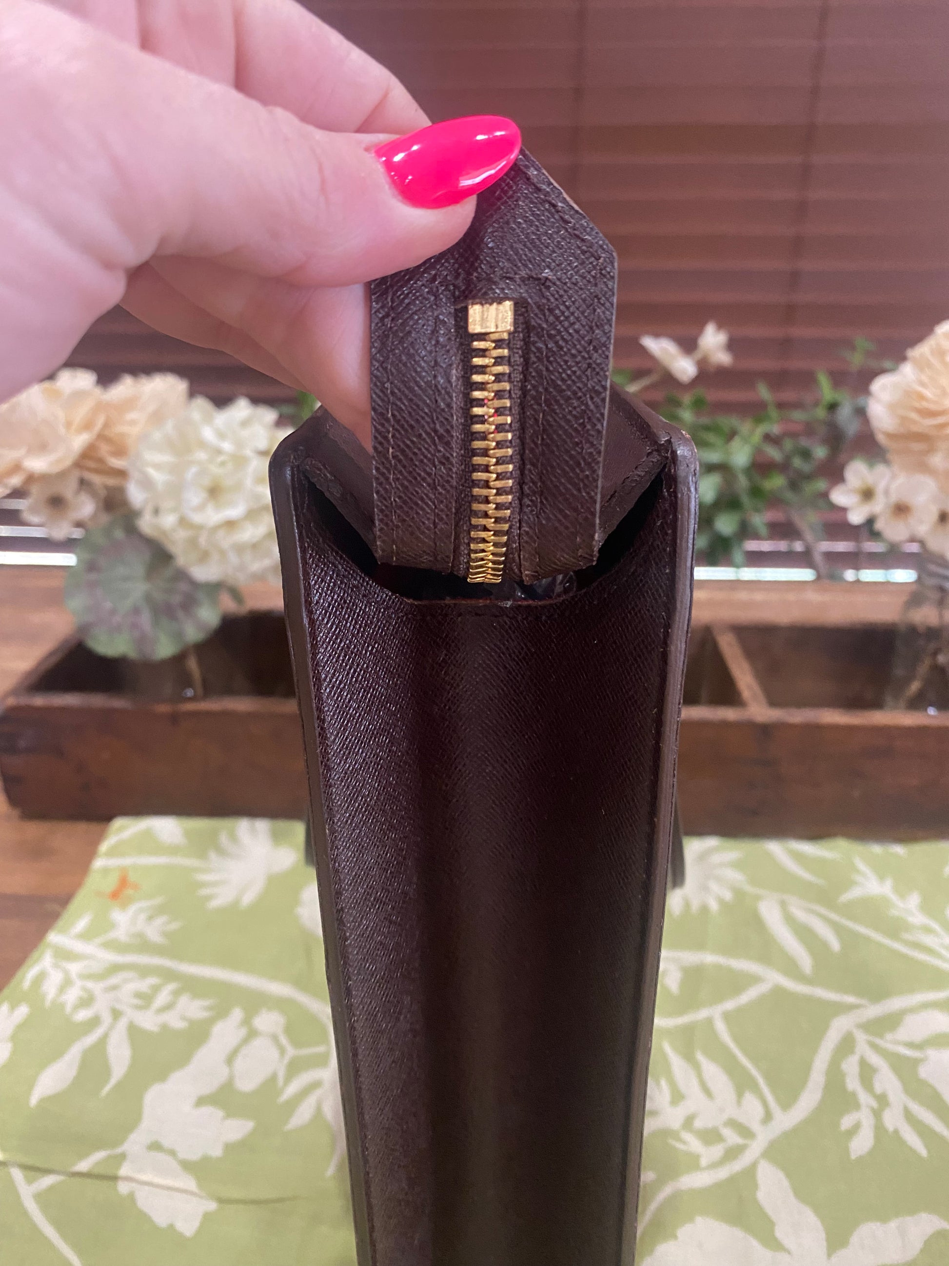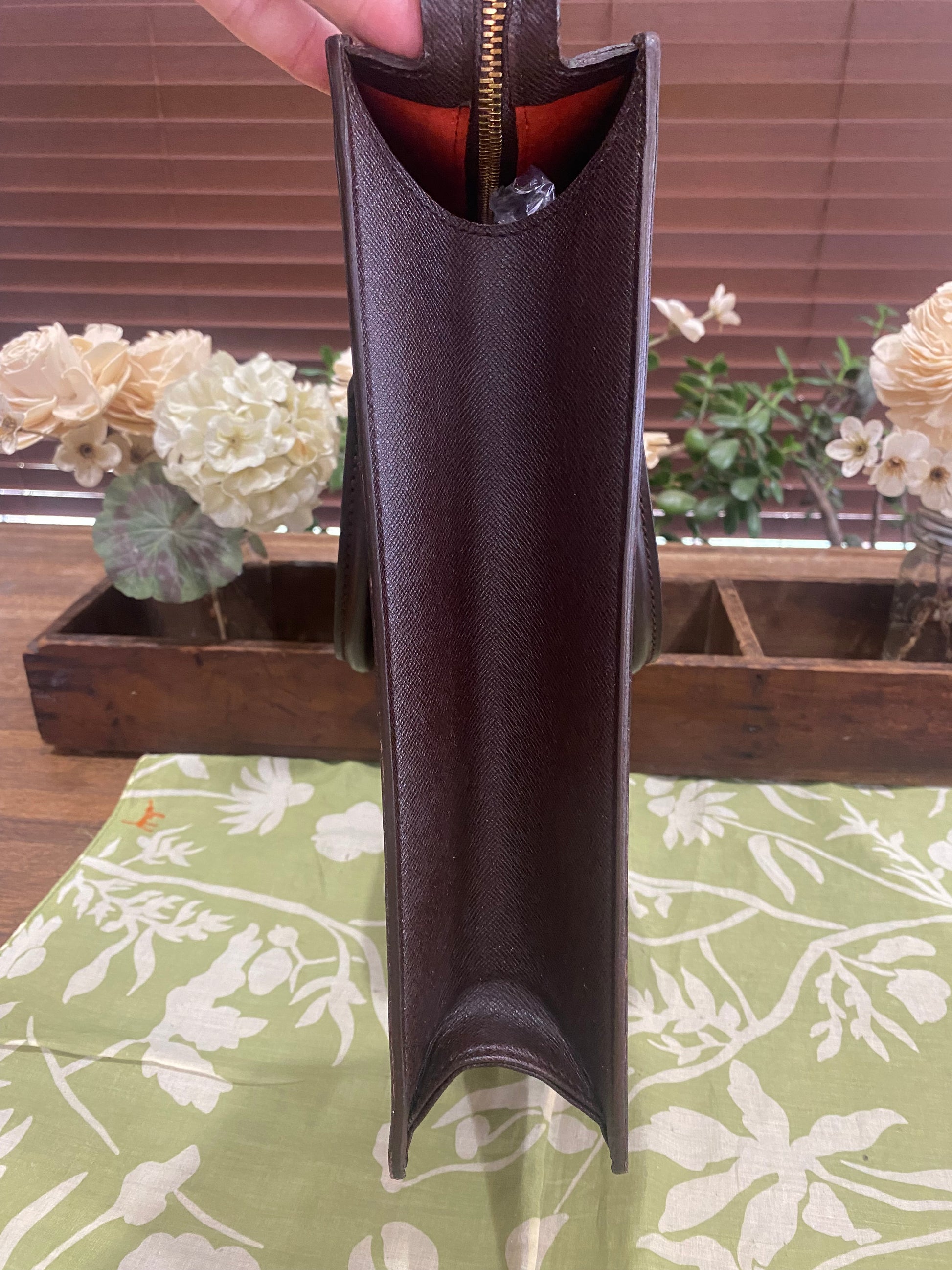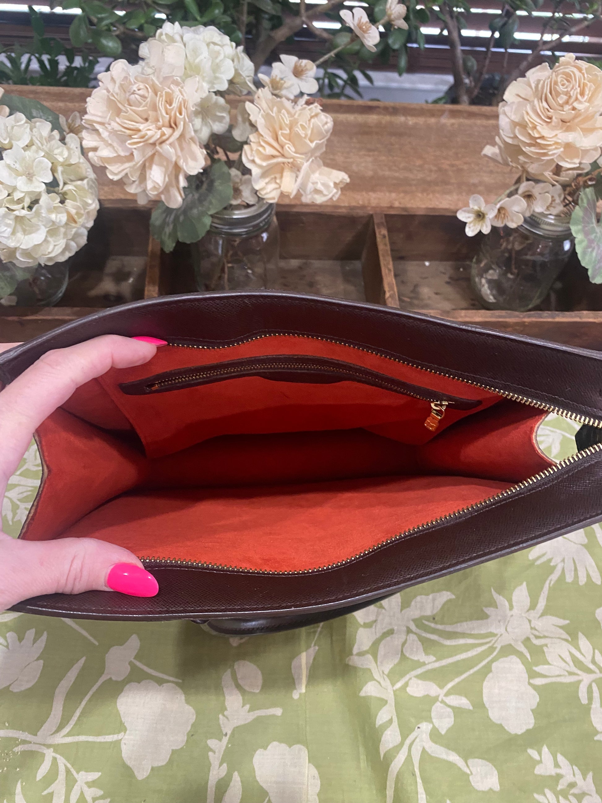 Canvas is stunning- no cracking or tears, print is vibrant, perfect structure, zipper runs smooth, hardware is shiny, glazing has some rubs-hardly noticeable and doesn’t affect use, interior shows signs of normal light wear-light stains/rubs, no foul smells.