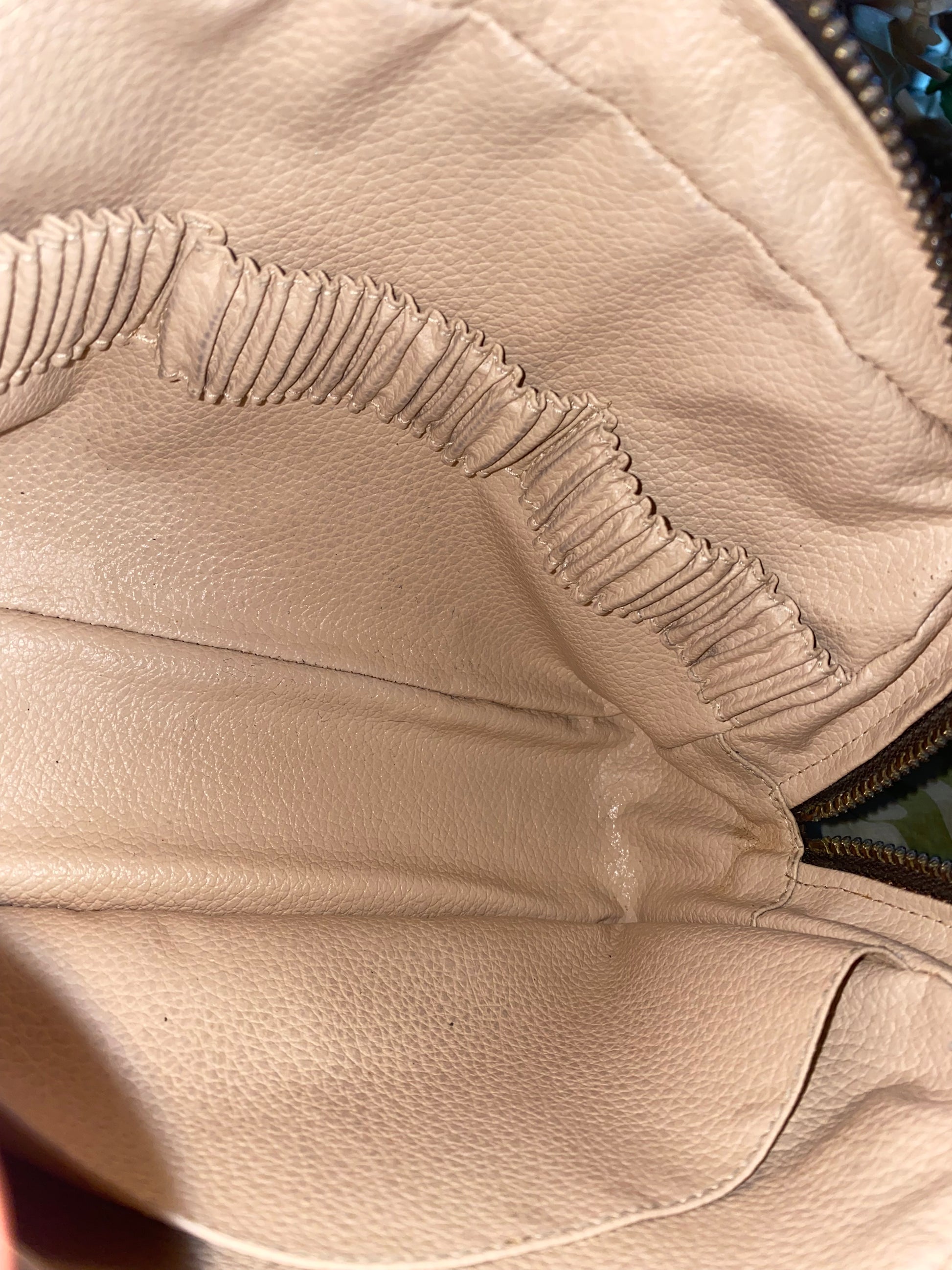 Thick vintage canvas is free of cracking or tears, corners are scuff free, zipper runs smooth, zipper has tarnish/metal discoloration, interior shows signs of normal use, no foul smells.